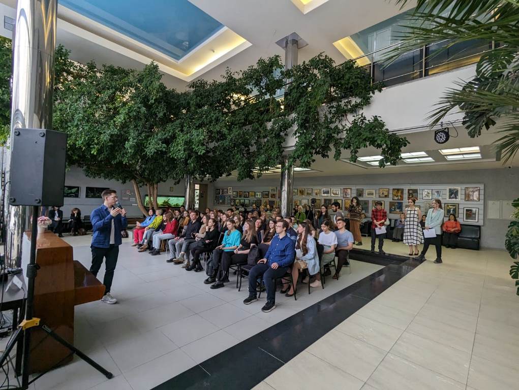 Участники Музыкального клуба Новосибирского государственного университета выступили 4 апреля в Зимнем саду Дома ученых в рамках проекта #Молодежная_среда_ДУ. В этот вечер звучала скрипичная, фортепианная, а также вокальная музыка; ребята представили классические и авторские произведения. В Зимнем саду собралось около 90 человек, среди них — студенты НГУ и молодежь Академгородка.