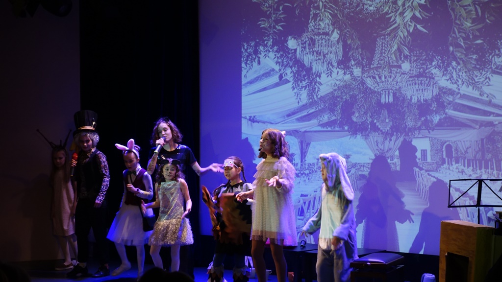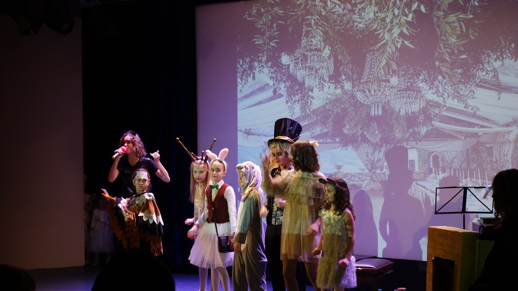 А 27 декабря был представлен не менее замечательный мюзикл «Алиса в стране чудес» с участием творческой студии «Фабрика талантов» и театрально-хореографического коллектива «Выход».