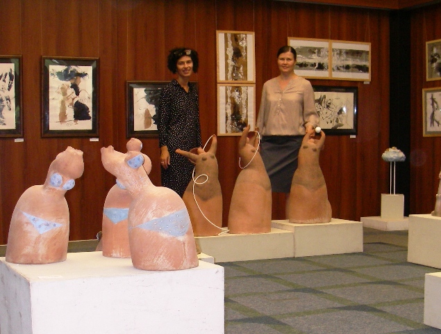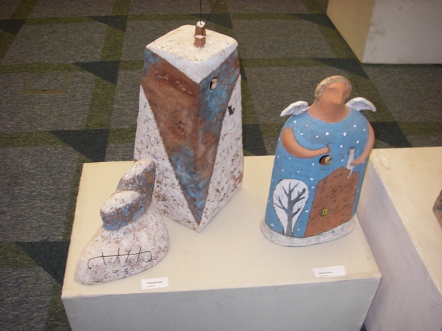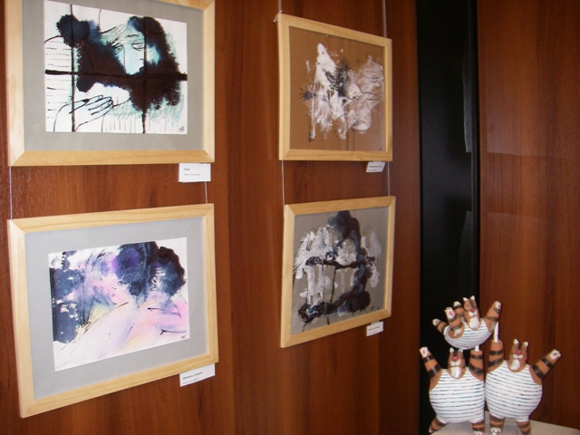 А в Арт-гостиной в эти дни можно увидеть коллекцию выставочной керамики и уникальной графики Юлии Балаш. Работы Юлии, её индивидуальный почерк хорошо знакомы нашим зрителям. Многие жители Академгородка её хорошо знают. Первая выставка Юлии прошла в Доме ученых всего несколько лет назад. Это были графические листы в технике дорисовок случайных пятен туши, акварели, разлитых чернил. Такие работы очень увлекательно делать, но ещё интереснее разглядывать, отгадывая силуэты, фигуры людей, животных, предметы, знакомых и случайных героев. Сейчас палитра технических приемов стала гораздо шире, это и эксперименты с фактурой мятой бумаги, белила, клей, даже цветной скотч, применения которого в графике в наших краях пока ещё не наблюдалось. Всё это в сочетании с безграничной фантазией художника и особой её любовью к керамике, скульптуре представляет нам уникально одаренного художника. Юлия Балаш – художник европейского уровня, она имеет и значительные награды в международных выставках графики. Но, к сожалению, природная скромность, а также местечковый уровень Новосибирска, наша территориальная, финансовая ситуация не позволяет выдающемуся таланту получить более высокий статус, получить более широкую известность, поддерживая таким образом и художественные традиции Академгородка, где вырастали многие выдающиеся мастера живописи и графики.