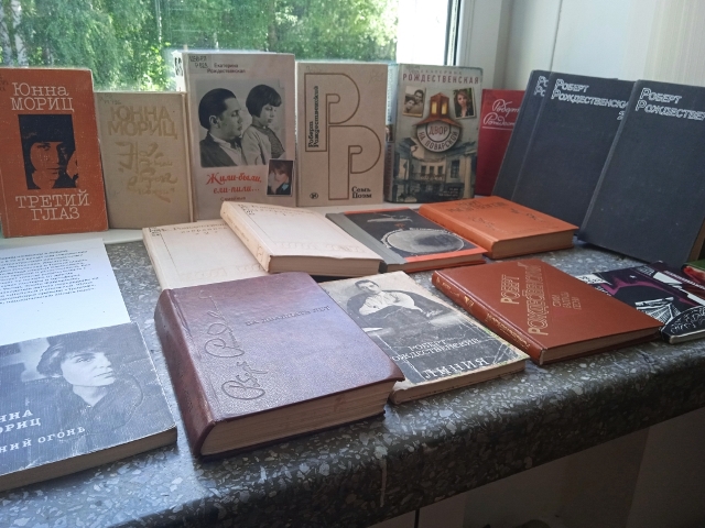 Июньская поэтическая выставка книг в библиотеке Дома Ученых объединила имена трех авторов, которые в этом месяце отмечают круглые даты. Это Арсений Тарковский (115 лет), Роберт Рождественский (90 лет), Юнна Мориц (85 лет). Творческий и жизненный путь каждого из них сложен и ярок.