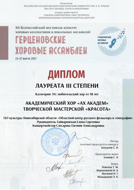 Коллектив и администрация Дома ученых поздравляют клуб хорового пения "АХ АКАДЕМ" с получением диплома 3 степени на конкурсе высокого уровня "Герценовские ассамблеи", СПб ГПУ имени Герцена в г. Санкт-Петербурге.