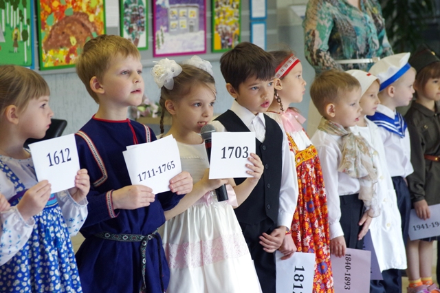 История, как и положено, начинается от Рождества Христа, потом было Крещение Руси, славные деяния великих сынов нашего Отечества, события истории и культурной жизни шагают полентевремени то одновременно, то попеременно, и дети, работая над выставкой, многое поняли, узнали, запомнили. Вот это и есть современные технологии образования. Тем более, что и презентация выставки была подготовлена и проведена самими участниками проекта просто блестяще. Молодцы, ребята!И огромная благодарность педагогам Ольге Алексеевне Ромашевой, Марии Николаевне Баженовой, руководителям гимназии за Ваш труд.