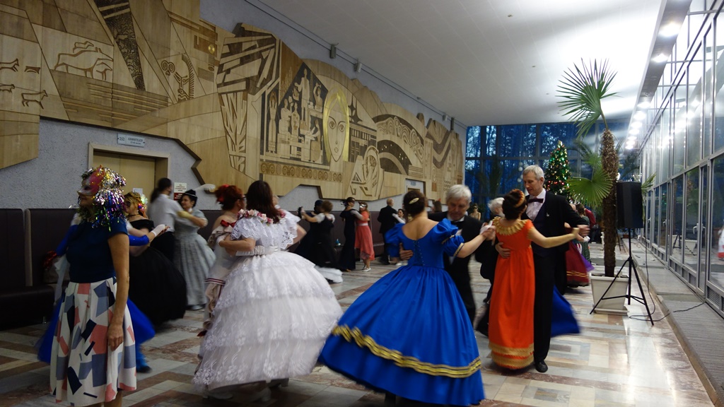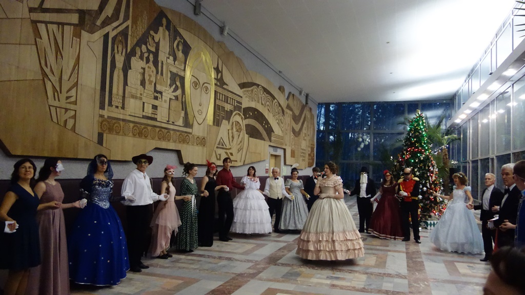Воскресным вечером в фойе большого зала проходил Рождественский бал. Дамы и кавалеры в красивых маскарадных костюмах и вечерних нарядах кружились в вальсе. Затем танцевали мазурку, кадриль… Вечер незабываемой красоты и праздничной атмосферы!