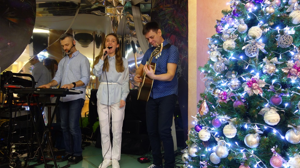 Тем же вечером в ресторане звучал соул-джаз в исполнении трио «Route 66». Изысканный вечер нам подарили музыканты Анастасия Морозова, вокал, Олег Зайцев, клавишные, битбокс и Юрий Иушин, гитара.