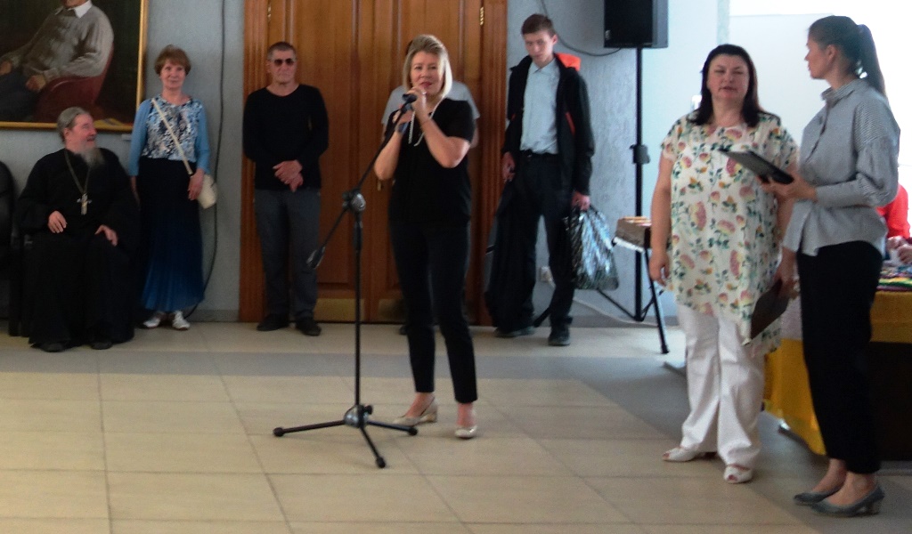 Поприветствовали собравшихся настоятель Прихода в честь Всех Святых, в земле Русской просиявших, отец Борис (Пивоваров), директор Дома ученых Галина Лозовая, зав. выставочным сектором Дома ученых Ирина Бич.
