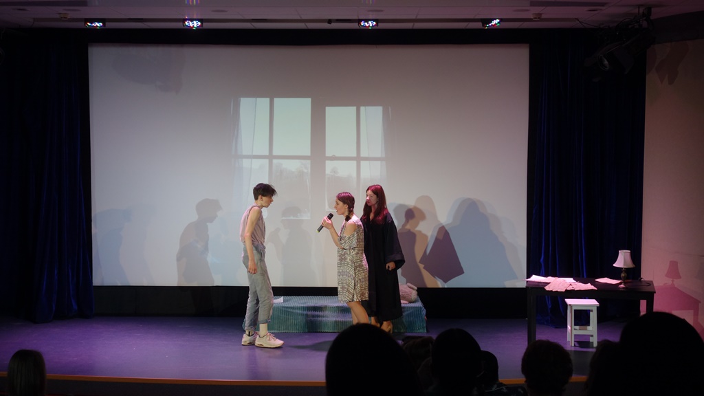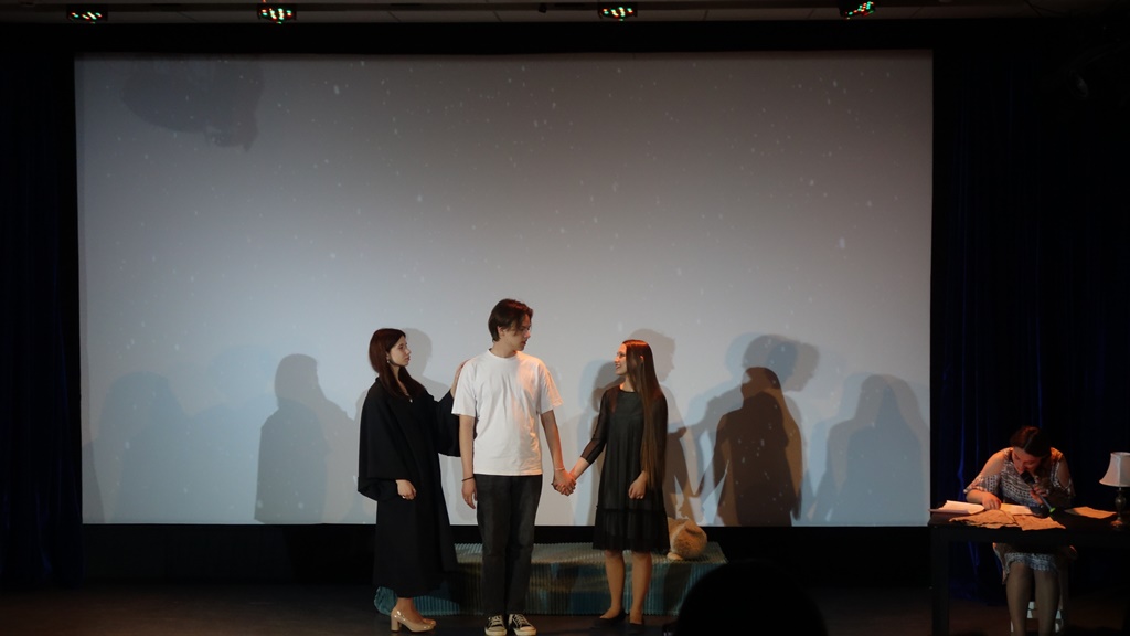 Еще один спектакль, долгожданная премьера молодежного театра «Чердачок», «Чем оканчивается слово “жизнь”?», состоялся 3 мая. Его режиссером стала Олеся Древа, выпускница актерско-режиссерского отделения АГИК. Как и в жизни, в представлении нашлось место юмору, философии и абсурду, а сами авторы называют его спектаклем-учебником.