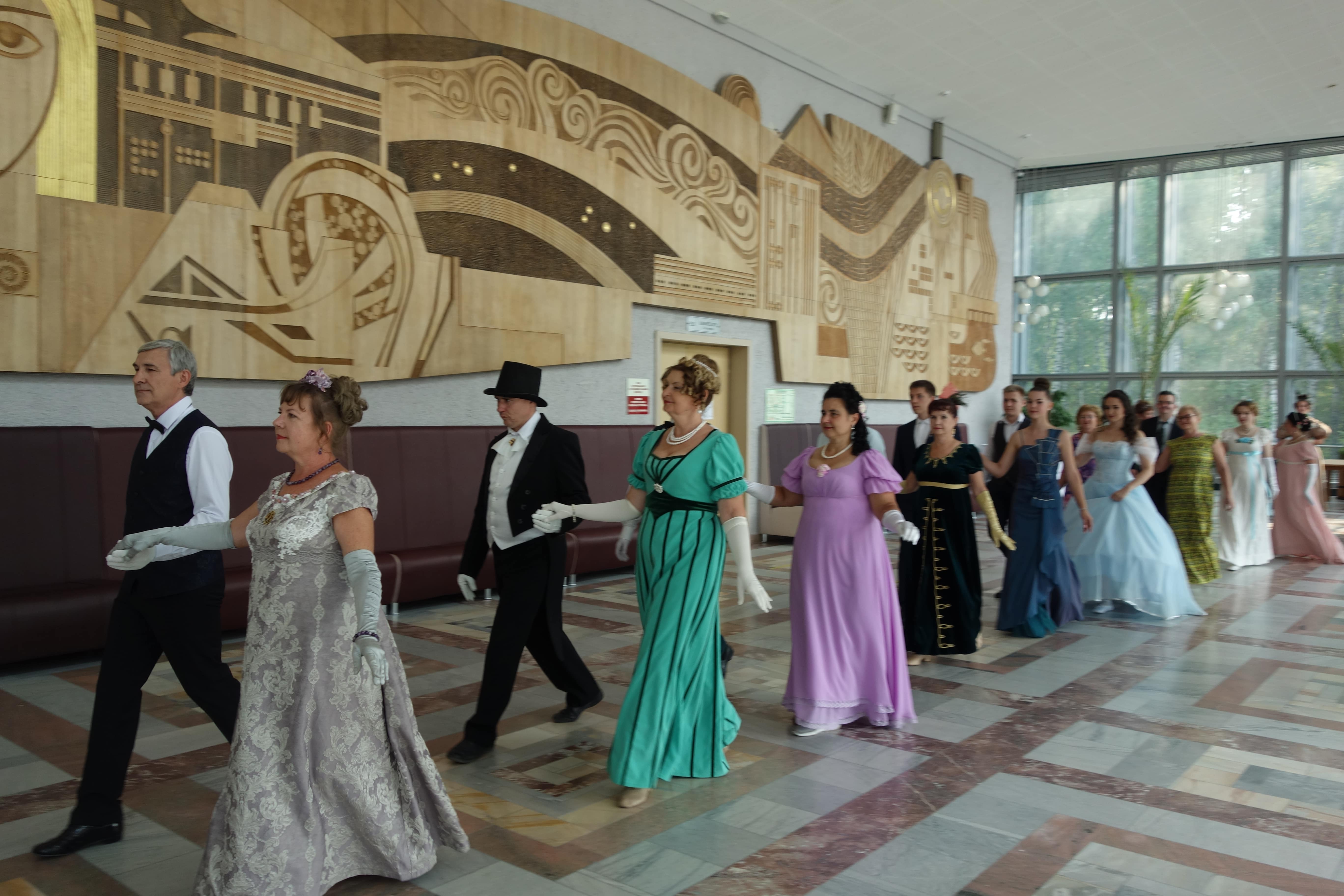 В минувшие выходные в Доме ученых состоялся Летний бал Школы светского танца "Отражение". Стилем вечера стал ампир, сочетание элегантности и легкости. Прекрасные дамы и галантные кавалеры исполнили традиционные парные танцы: вальсы, полонезы, польки, мазурки, менуэты. Здесь рады гостям разного уровня подготовки: часть танцев разучивается прямо на балу. Хорошо провести время смогли как те, кто уже давно занимается бальными танцами, так и новички.