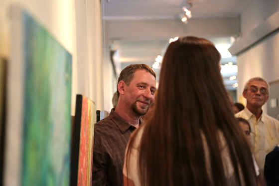 На вернисаже были многочисленные поклонникимастера,художники, фотографы, музыкантыАкадемгородка - соратники из группы М'арт, где Олег совершенствовал свое мастерство под руководством Н.А.Чижик, Олег Шелудяков, Елена Юдина, Галина Чирикова, Владимир Козлов.
