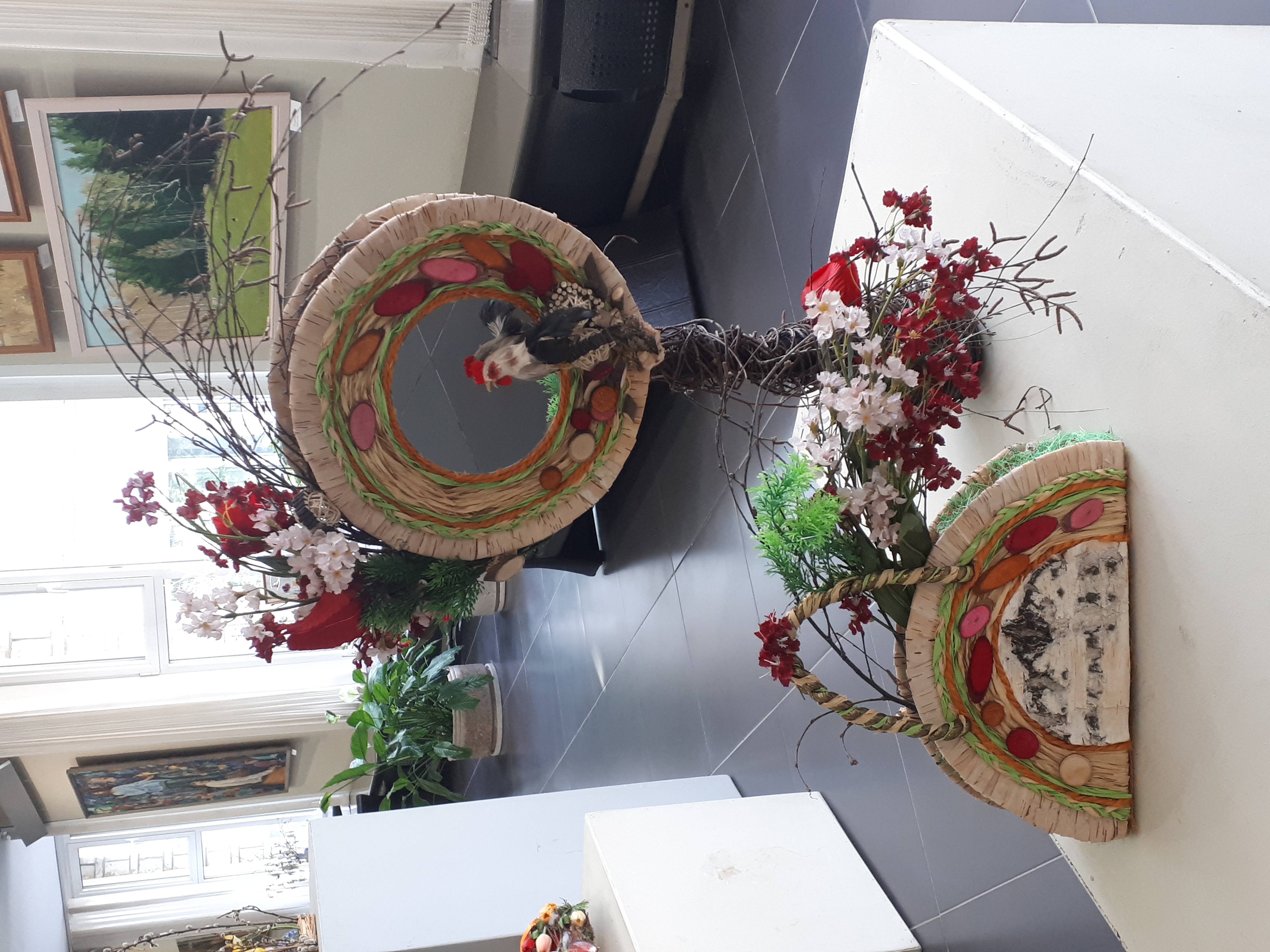 Мастера флористики клуба «Сакура» Новосибирского Дома ученых представили выставку работ «Весенний перезвон», приуроченную к празднику Пасхи. На ней можно увидеть композиции с живыми растениями и цветами, выполненные в различных техниках и дополненные элементами, традиционно символизирующими весну, возрождение, радость пасхальных праздников: верба, крашеные яйца, изображения ангелов, животных, птиц.