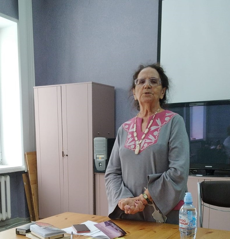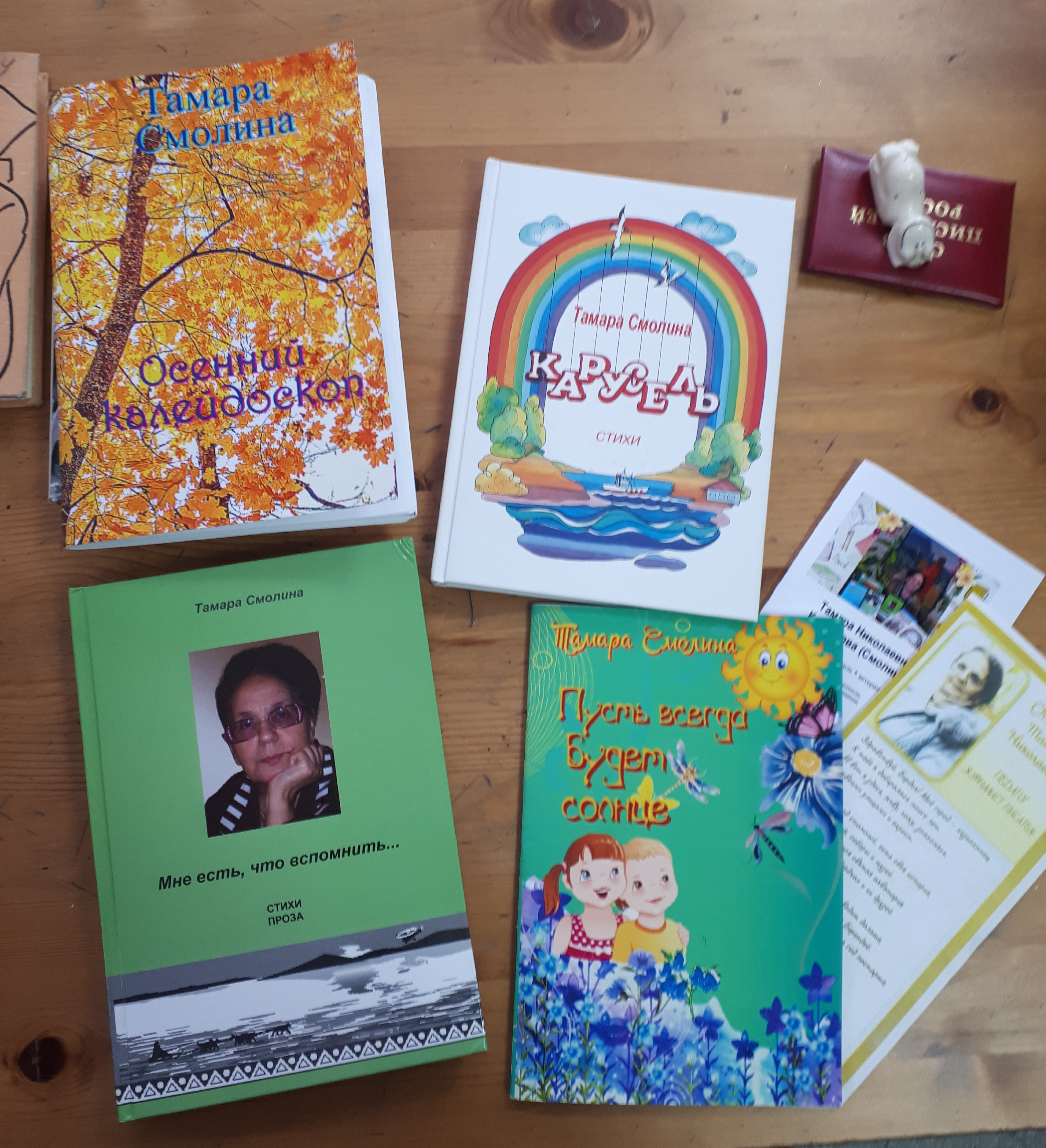 Тамара Кликунова (Смолина) – член Союза писателей России, журналист, педагог и математик. Среди книг писательницы – поэтические сборники «Лунный иней», «Звезды звенят, слышите…», «Осенний калейдоскоп», книга воспоминаний «Мне есть, что вспомнить…». Тамара Николаевна долго жила и работала на Чукотке, на Крайнем Севере, о котором сохранила много воспоминаний. Некоторыми из них она поделилась с собравшимися: рассказала о жизни и творчестве чукотского писателя Юрия Рытхэу (Рытхэу – его настоящее имя, записанное в документах как фамилия), а также о различных северных промыслах: резьбе по кости, китовом промысле, изготовлении чукотских талисманов пеликенов – фигурок северных божеств-тотемов из моржового клыка. Сама Тамара Смолина стала одним из 25 деятелей культуры, награжденных памятными знаками им. Ю. Рытхэу, дипломантом VIII литературного конкурса им. Ю. Рытхэу, а также получила две премии газеты «Советская Чукотка» (сейчас – «Крайний Север»): за детские стихи и за детскую песню.