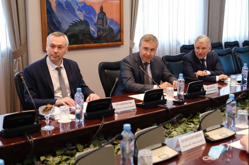 Губернатор НСО Андрей Травников, Министр науки и высшего образования РФ Валерий Фальков и Председатель СО РАН академик Валентин Пармон