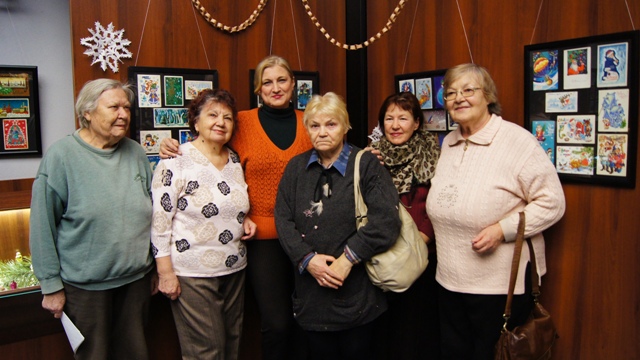 На счастье, оказалось, что наш постоянный партнер по выставкам Елена Нежинская - страстный коллекционер открыток, в том числе новогодних. Как здорово они смотрятся теперь в наших рамках, тщательно отсортированнные по темам и композиции, а главное - удалось разместить только лучшие экземпляры 60-70-гг и из поздних - Зарубина и Четверикова.