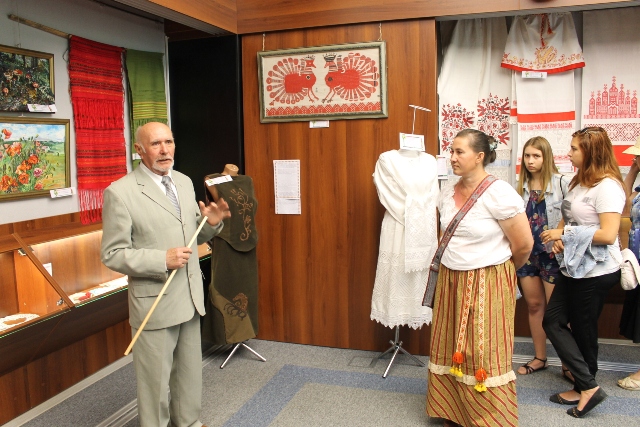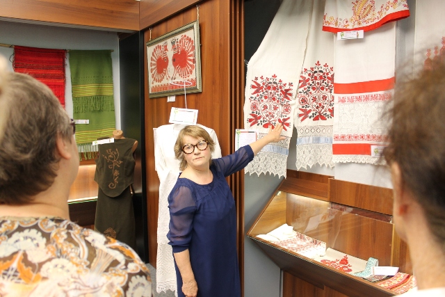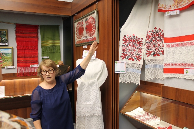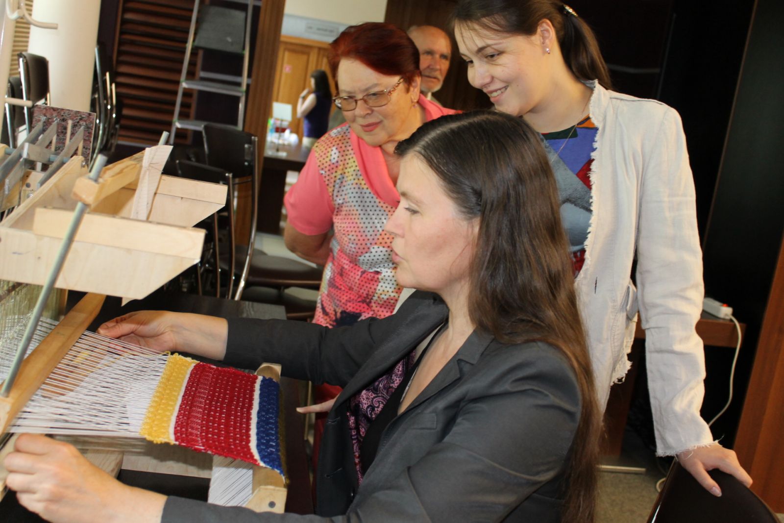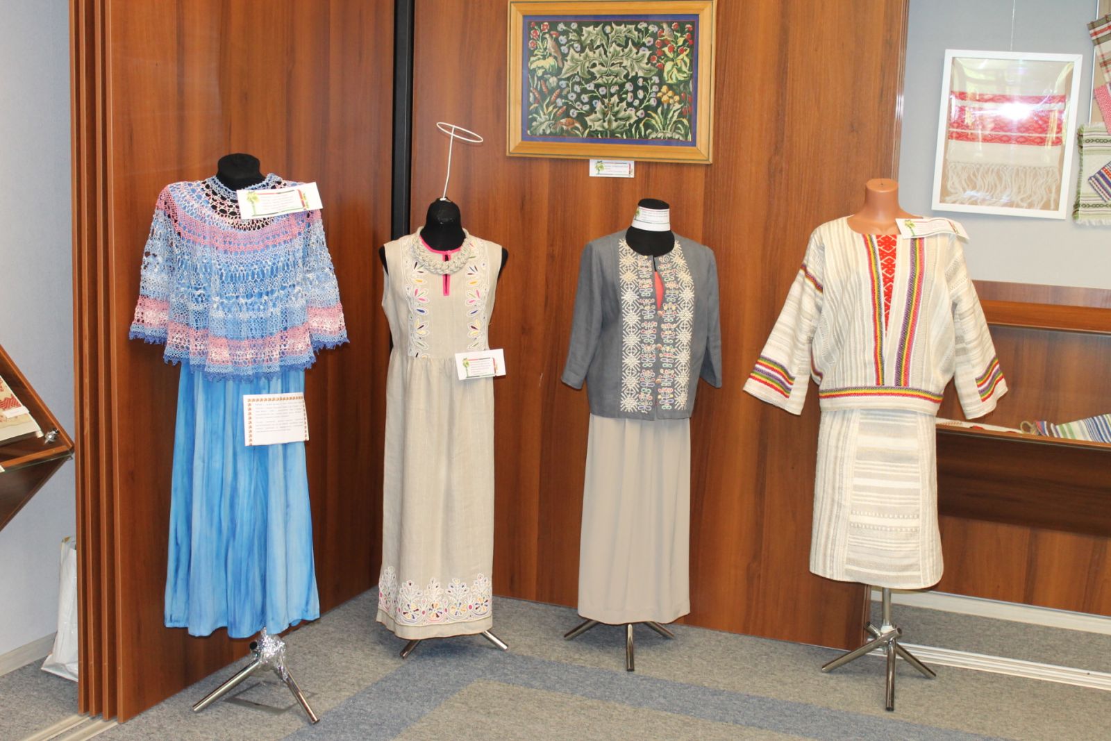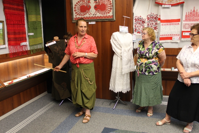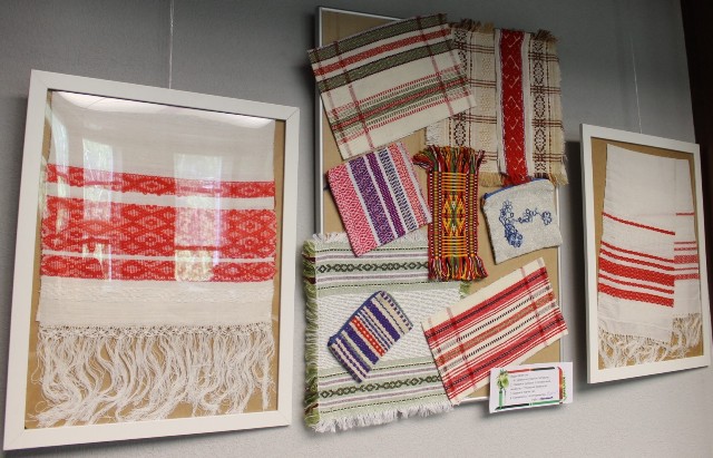 Большая часть экспозиции посвящена ткачеству. Сегодня ручное ткачество встречается очень редко. Мастер, создающий ткацкие станки разного калибра, Василий Дмитриевич Попович, вместе в супругой Надеждой Николаевной представили модель настольного ткацкого станка и свои изделия - палантины, дорожки, салфетки, костюмы изполотна ручной работы. Технология многоремизного ткачества позволяет создавать яркие, цветные, с узорами полотна. Возможность попробовать свои силы была предоставлена и гостям выставки.