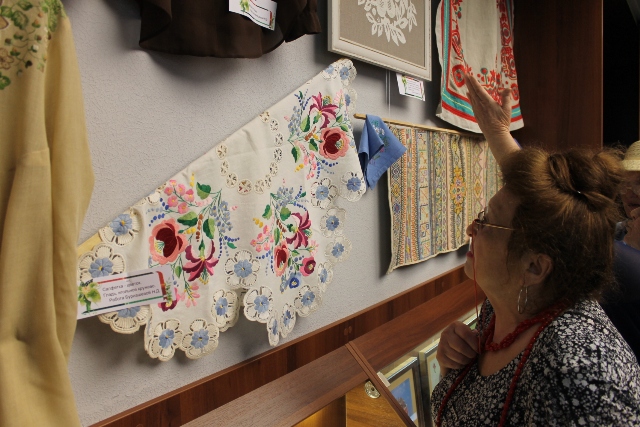 Среди экспонатов выставки - настоящие подлинные этнографические вещи 19 и 20 веков. Свадебные полотенца, одежда, элементы декора дома и человека, картины и скатерти, рушники и салфетки - очень многое в былые времена украшалось вышивкой. Это итончайшие стяги, и кружево, и древние узоры, и всевозможная гладь, и крестик. Все типы швов вышивки не перечислить. Более 50 экспонатов вошли в состав этой первой, но наверняка и самой интересной выставки клуба.