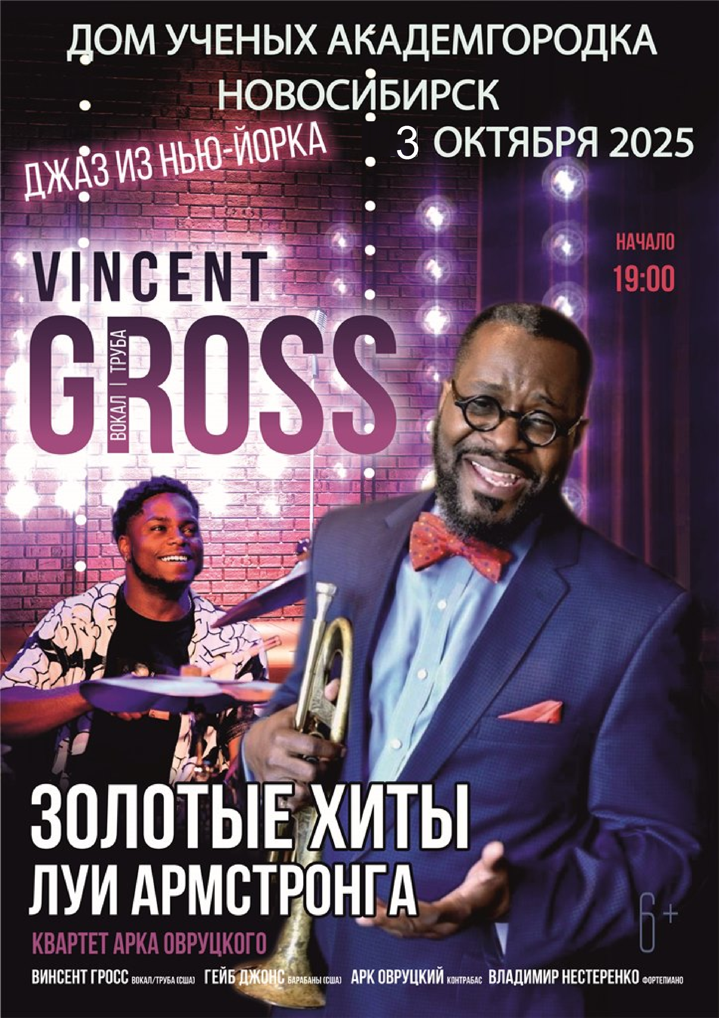 Уникальный американский джазовый вокалист и трубач из Балтимора (США) Винсент Гросс и барабанщик из Вашингтона (США) Гэйб Джонс совместно с международным квартетом Арка Овруцкого представят новую программу золотых хитов из репертуара Луи Армстронга.