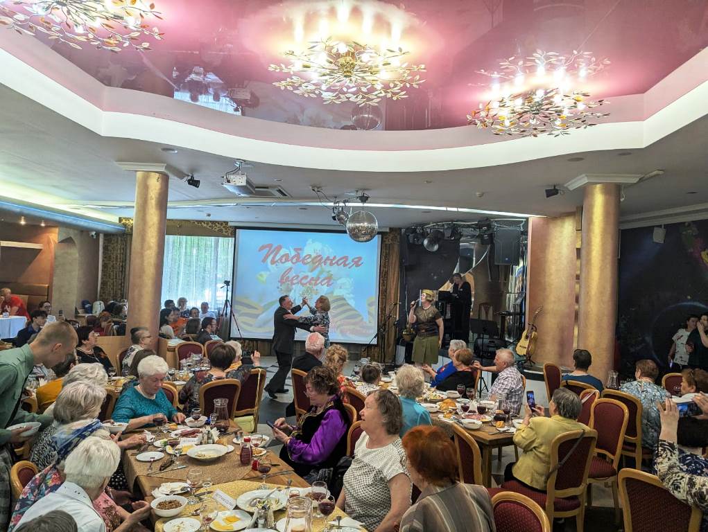 В ресторане Дома ученых состоялся праздничный вечер «Победная весна». «Смуглянка», «Синий платочек», «Катюша» и другие песни, ставшие настоящими гимнами Победы, прозвучали в исполнении солистов и коллективов Новосибирска и Академгородка. С поздравительным словом перед гостями выступили ветеран Вооруженных сил России, председатель Совета ветеранов Советского района Виталий Бертяков и председатель автономной некоммерческой организации «Лига Отечества» Евгений Петров.