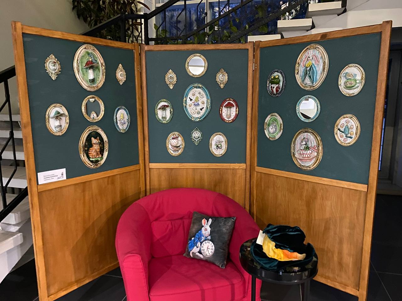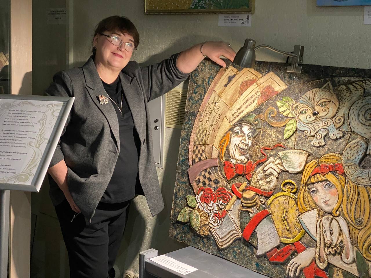 Но это не всё! Раз выставка посвящена книгам, то и выставка самых лучших и редких изданий "Алисы в стране чудес" появилась в Арт-гостиной, которая, вообще-то, читальный зал библиотеки Дома ученых. Предоставили свои коллекционные книги Елена Кириллова и Екатерина Романосова, которая также предоставила уникальный декор - фарфор и фаянс на тему героев сказки, вышивку и графику. Около 40 книг самых разных иллюстраторов и переводов на нескольких языках представлено в экспозиции. По выставке книг пройдут две экскурсии художника Елены Кирилловой - 25 декабря в 19 часов и 17 января в 13 часов.