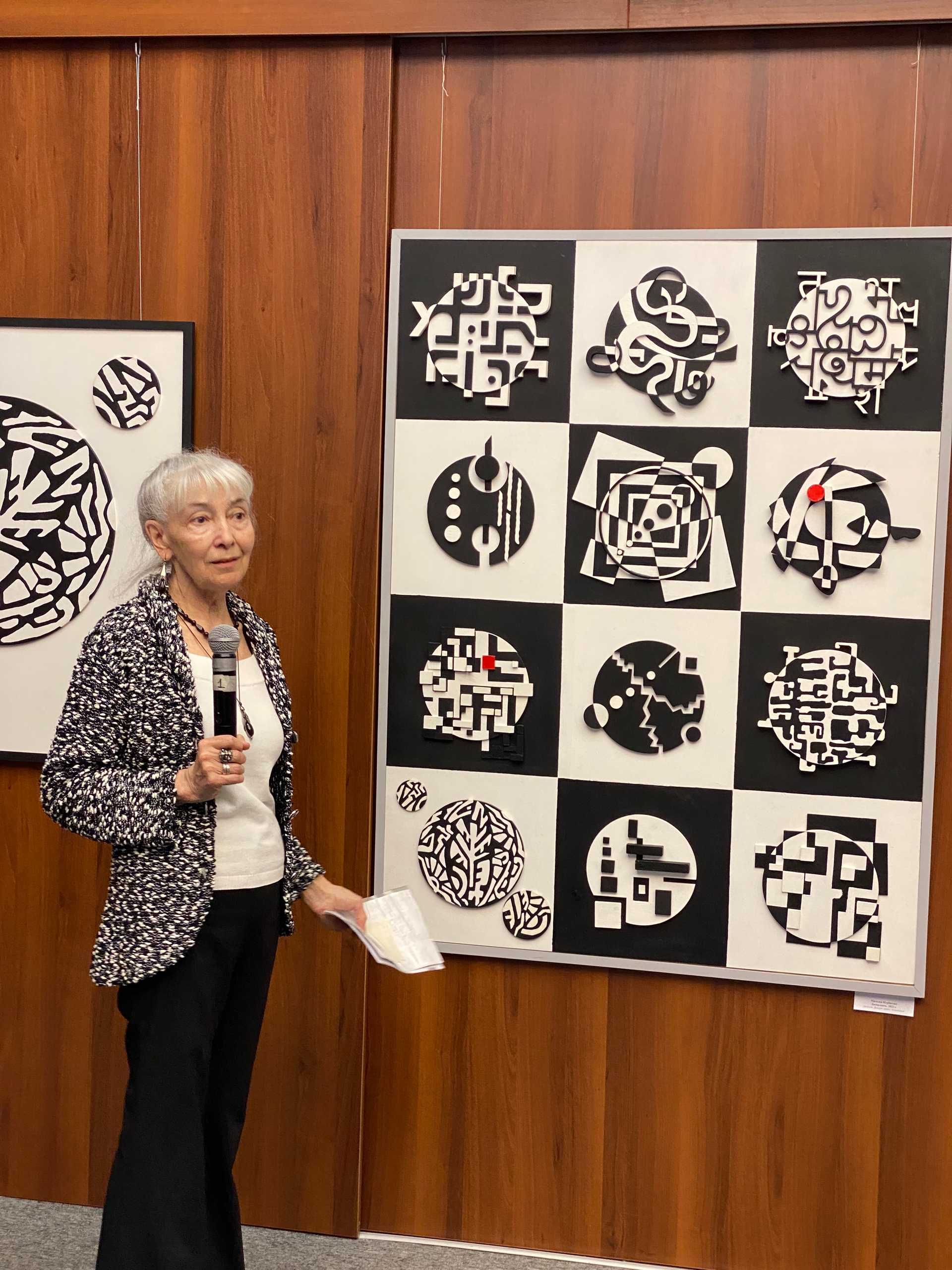2 апреля в Арт-гостиной НДУ открылась выставка "Беспредметный мир Натальи Курбатовой" - коллекции геометрических абстрактных работ, выполненных в технике ассамбляж. Представила выставку Александра Рогова, мать Натальи Курбатовой. Художник ушла из жизни после тяжелой болезни в 2023 г.