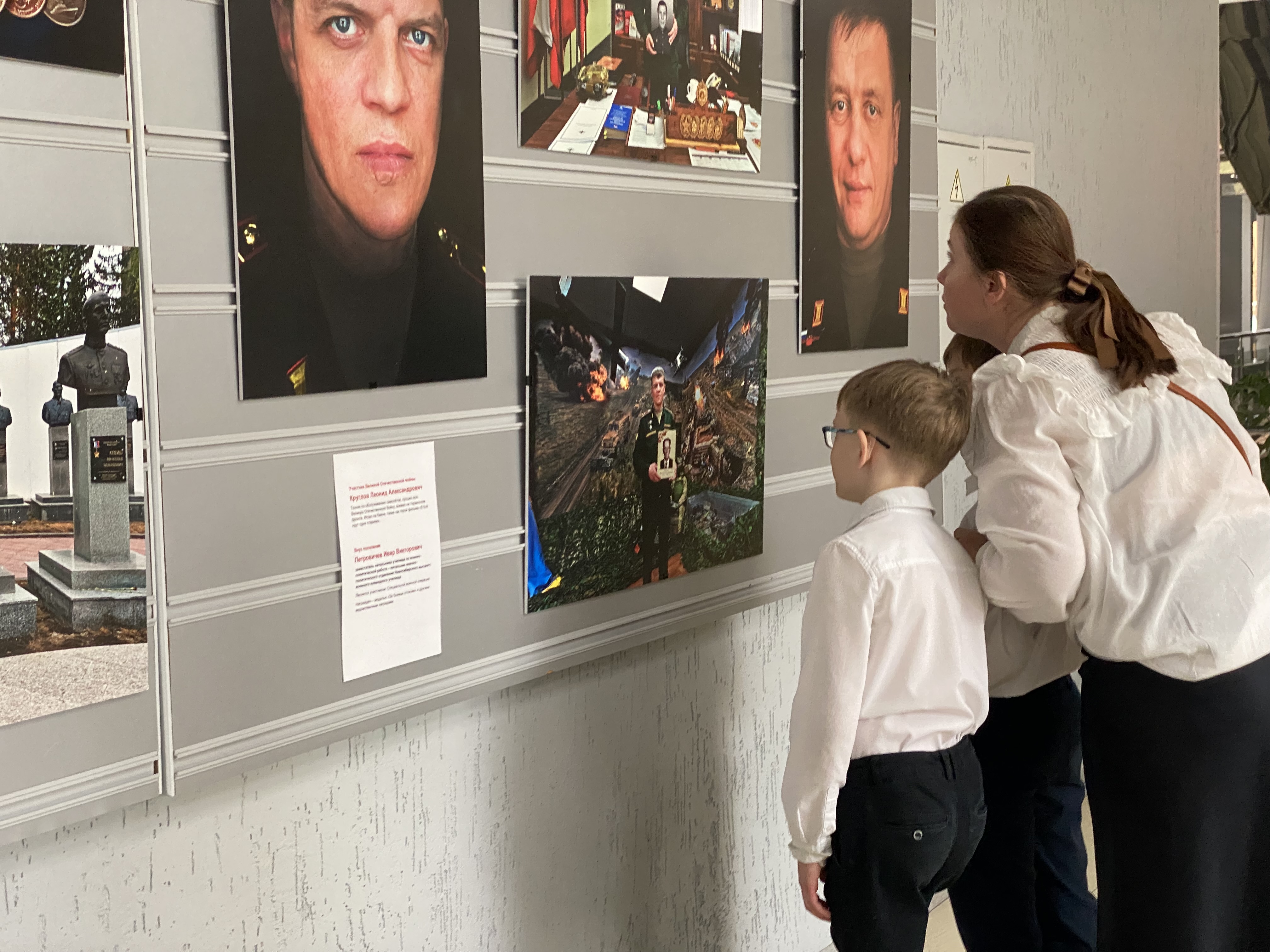 На открытии выставки присутствовали герои СВО - офицеры и курсанты, которые тоже пришли получать военную специальность уже после участия в сражениях. Все они награждены медалями и орденами, Среди участников - трое Героев России: подполковник В.С.Антонов, майор Е.А.Захаров, курсант В.А. Нарушевич. Участники проекта пришли с семьями, маленькими детьми, жёнами и друзьями. Каждый из пришедших воинов рассказал о своих прадедах. С открытием выставки и приближающимся праздником Победы всех гостей поздравили директор ДУ Галина Лозовая, председатель СО РАН академик В.Пармон, заместитель главы администрации Советского района И.В.Мезенцев, настоятель храма протоиерей Б.И.Пивоваров. На открытии выставки выступили два хоровых коллектива Православной гимназии. Выставка организована при поддержке депутата А.Аксёненко.
