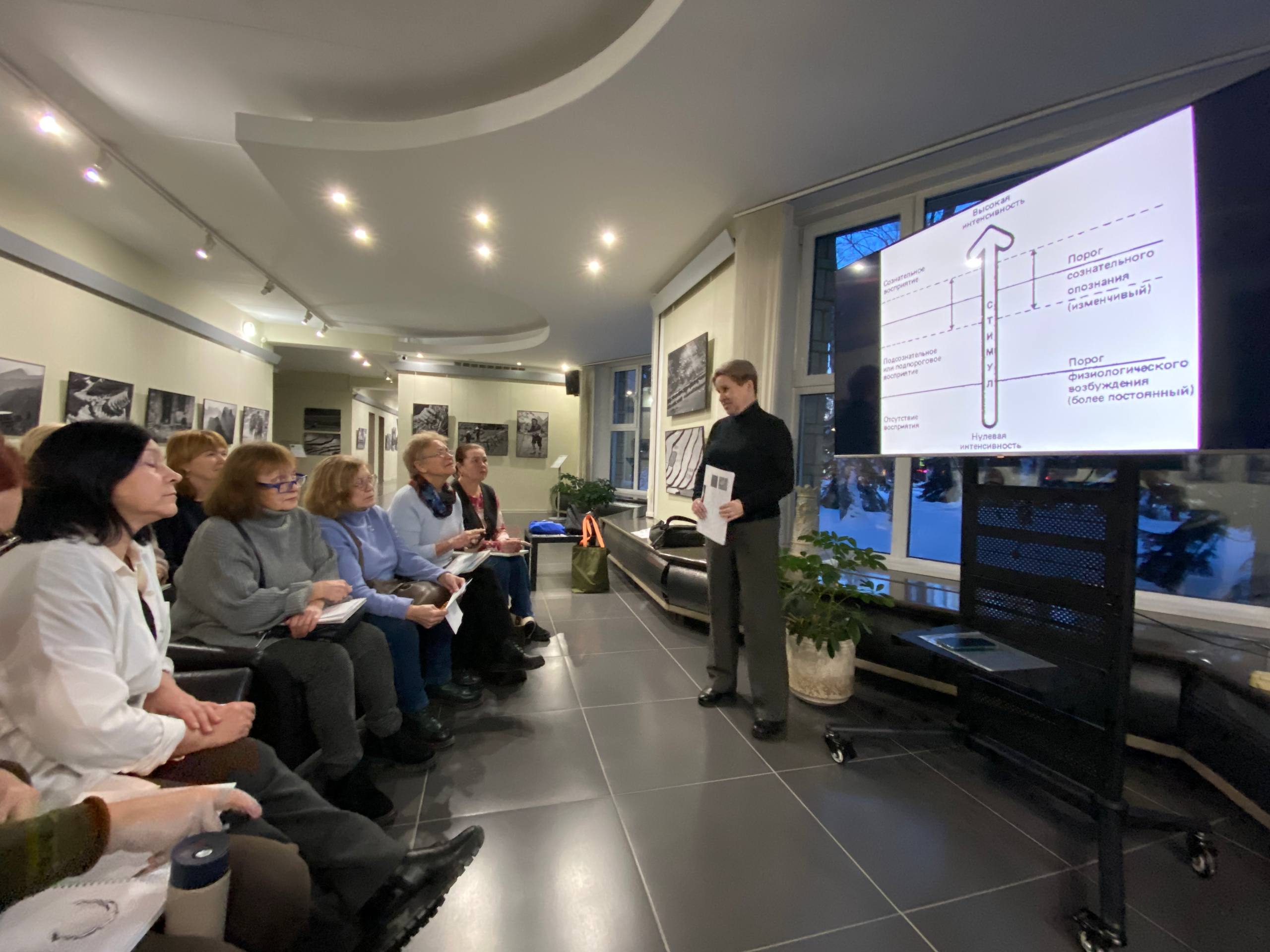 В среду вечером на арт-клубе "Вернисаж", который прошел в обстановке шикарной выставки РИС, поговорили про психологию зрительного восприятия. Художник Ольга Великая рассказала об одной из сторон воздействия визуального произведения на мозг человека. Кроме теоретических схем, провели упражнения для понимания своих реакций и представлений о визуальном языке передачи эмоций и затем сравнили их с собранными ранее результатами подобного исследования - эксперимента. Кроме того, посмотрели, ка работают базовые принципы теории в известных полотнах и графических произведениях.