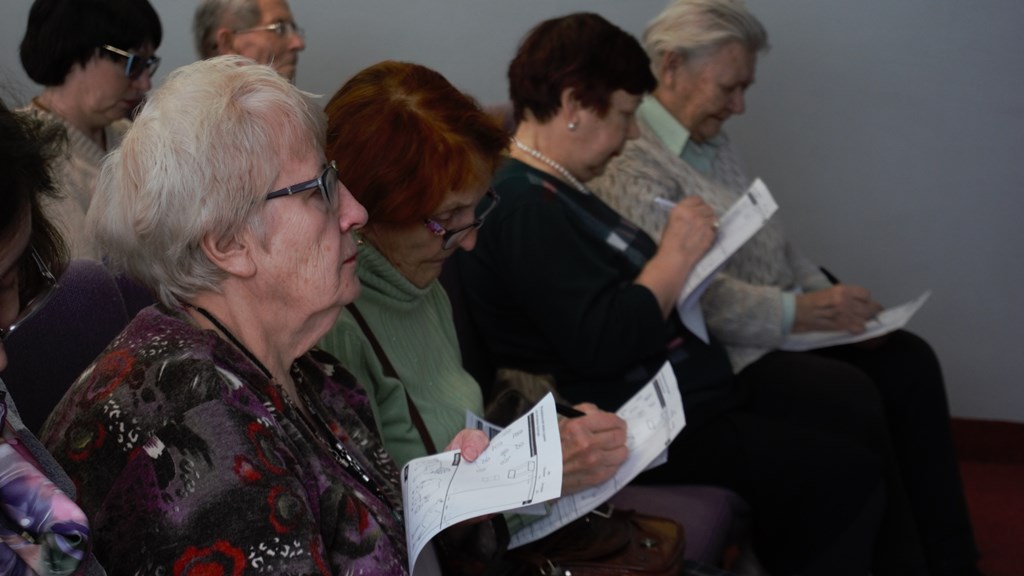 На первом занятии 3 марта руководитель проекта прочитала лекцию о причинах, видах и признаках деменции, также были проведены тестирования по монреальской шкале когнитивной оценки всем желающим. На следующих пяти занятиях будут представлены практические методы и упражнения для борьбы с деменцией, тренировки на умственную активность, также участники проекта будут выполнять домашние задания.