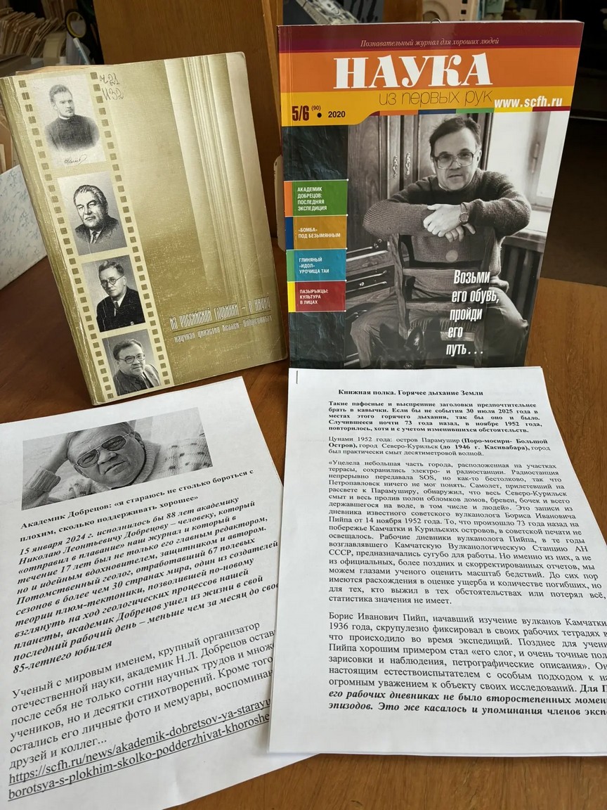 «Пазл сложился», хотя изначально и не подразумевался. Именно на Камчатке Леонтий Добрецов встретил Юлию Николаевну – маму нашего академика Николая Леонтьевича Добрецова. И его самого всегда тянуло в эти богатейшие для исследователя края. Последний раз Н. Л. Добрецов побывал на Камчатке в 2018 году, пешком поднялся на вершину вулкана Ксудач. И хотя это была экскурсионная поездка, тут же взялся собирать образцы породы и прочел импровизированную лекцию остальным участникам восхождения.