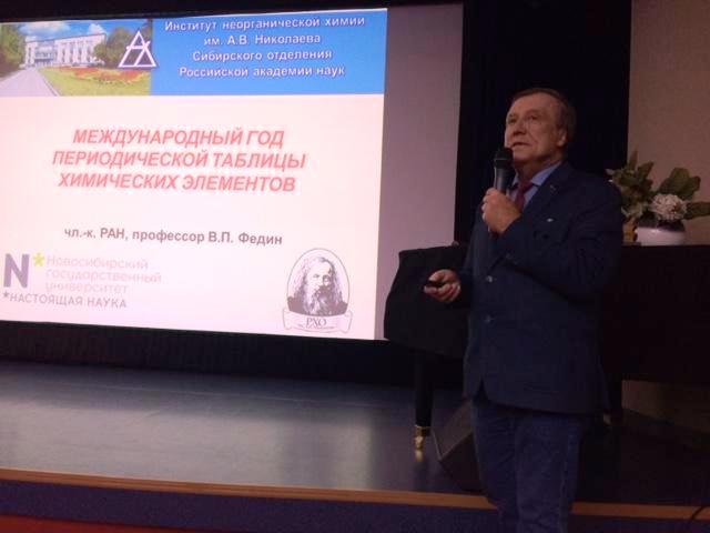 22 марта в Малом зале лекцию«К 150-летию со дня открытия периодической таблицы Д.И. Менделеева»школьникам прочитал директор Института неорганической химии СО РАН член-корреспондент РАН Владимир Петрович Федин.