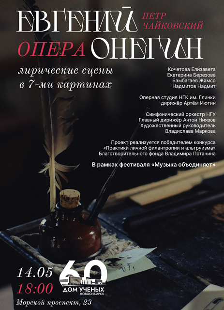 Первые постановки «Евгения Онегина» были реализованы не на сцене императорских театров, а консерваторцами и музыкантами-любителями. Сегодня их преемниками становятся молодые музыканты и вокалисты, а также те, для кого музыка стала не профессией, но призванием и любимым делом. Отметим, что в Новосибирске до недавнего времени ставилась только концертная версия «Евгения Онегина», поэтому новую постановку можно с полным правом назвать уникальной. Зрители имеют возможность полностью увидеть одну из лучших опер не только в отечественной, но и в мировой музыке.