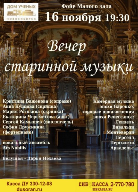 Барочные арии и хоровая музыка Ренессанса. ((В программе произведения)) - Вивальди, Перголези, Монтеверди, Пëрселл, Лотти, Аркадельт, Бëрд.