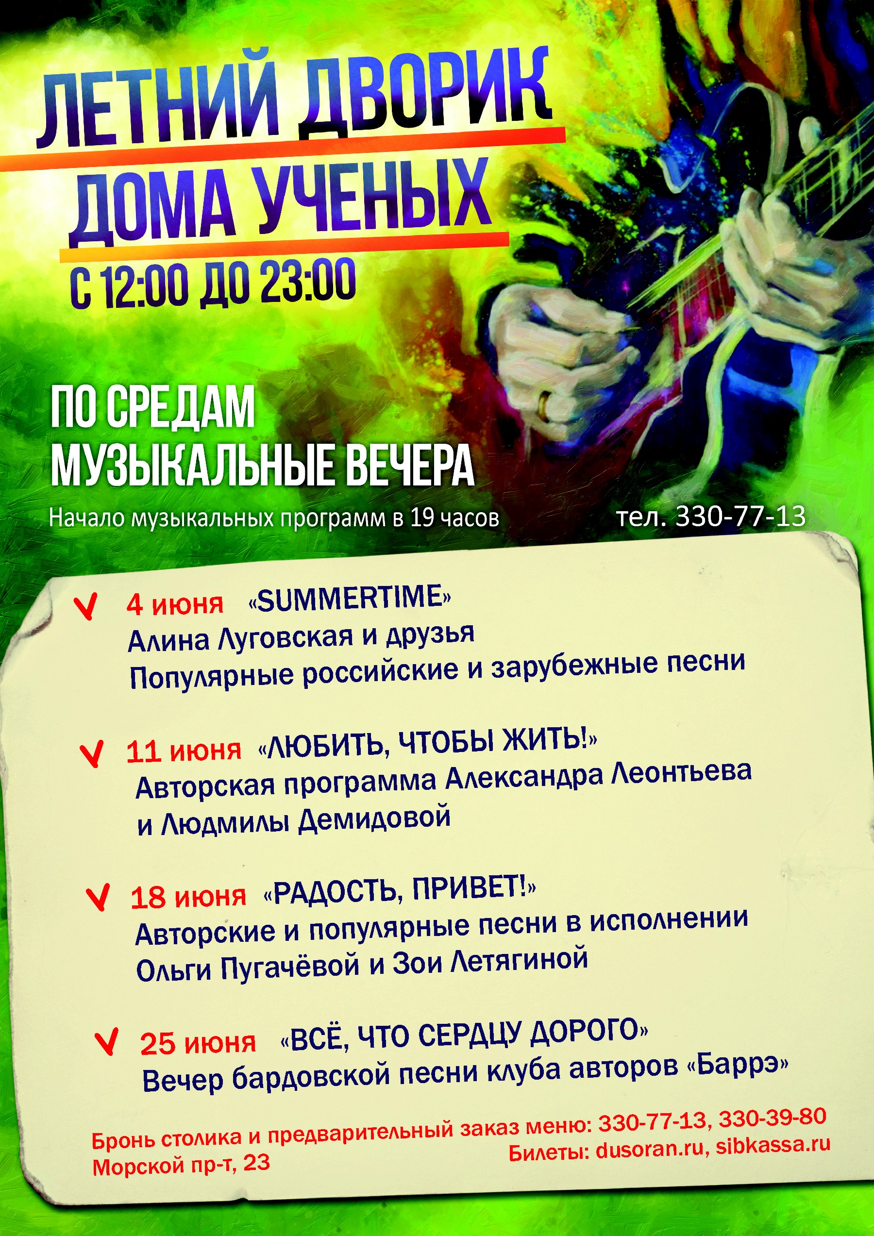 Предварительная продажа билетов: 400 руб. В день концерта 500 руб. Билеты онлайн: dusoran.ru, sibkassa.ru