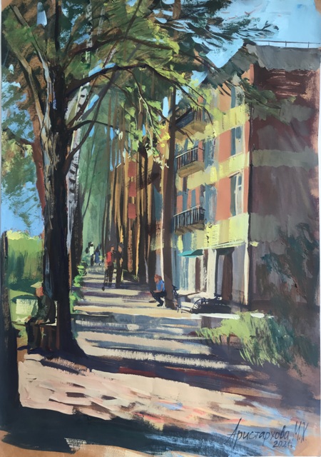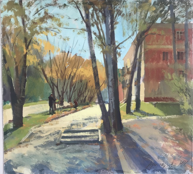 После пандемии мы провели пленэр и весенний, специально, чтобы в нашей первой выставке был Академгородок не только осенний, но и цветущий, со знаменитыми розовыми яблонями. В третьем пленэре принимало участие более 50 человек!