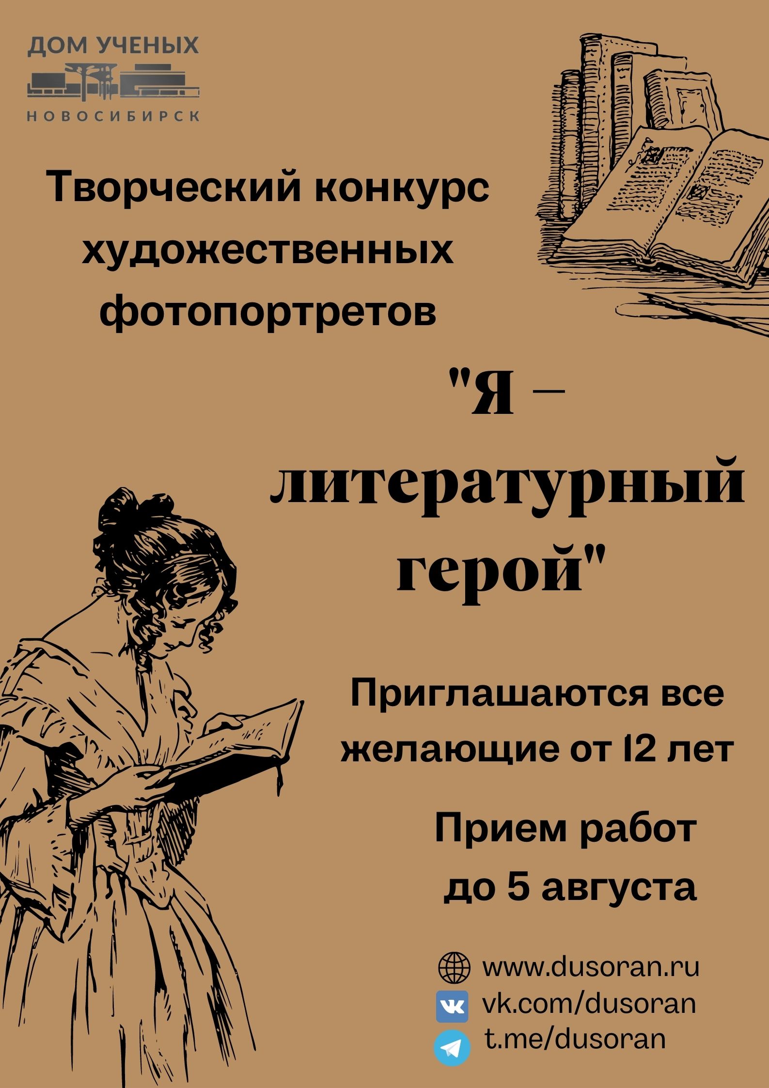 Новосибирский Дом ученых приглашает школьников, студентов, педагогов, родителей и всех желающих к участию в открытом творческом конкурсе «Я – литературный герой».