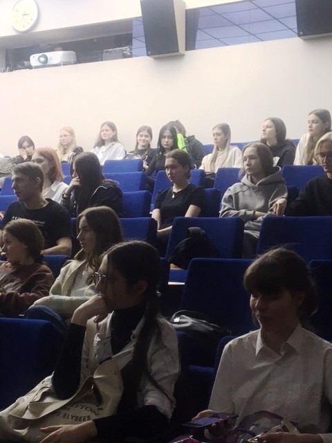 Лекцию слушали 46 школьников очно и более 150 школьников из разных школ города онлайн.