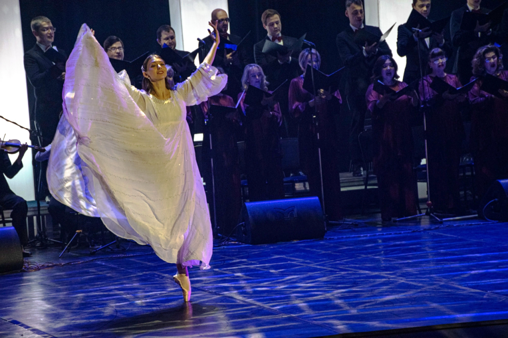 Но вот со звонком распахиваются двери в Большой зал. Гаснет свет, и мы рассекаем межзвездное пространство вместе с лауреатами международных конкурсов юным вокалистом Федором Выграненко и артисткой балета Анной Осиповой.