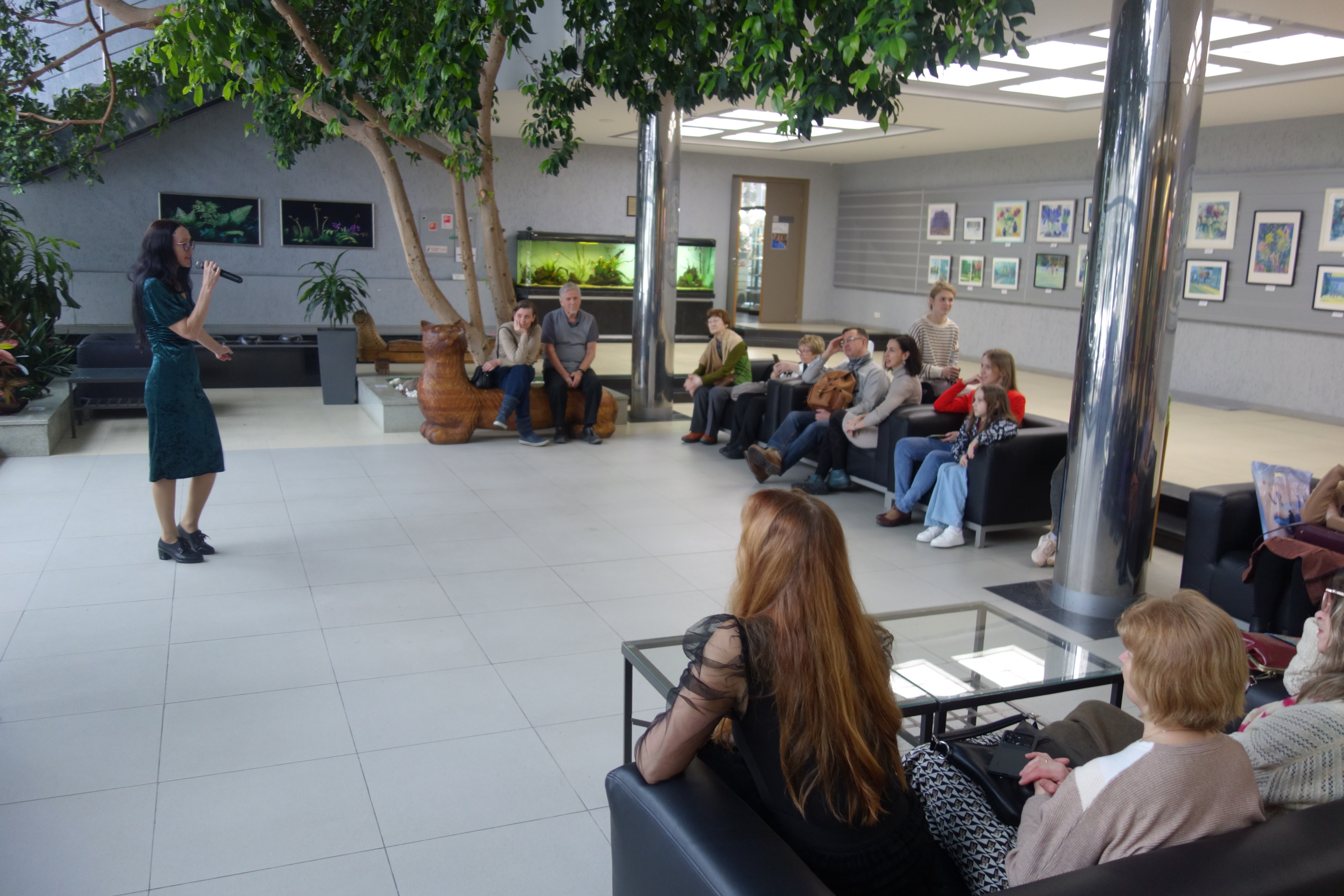 Так же неформально и весело, с музыкой, тепло и душевно прошел вернисаж выставки. Гости после просмотра выставки и поздравительных слов послушали зажигательные песни в исполнении Аллы и её подруги Юлии.