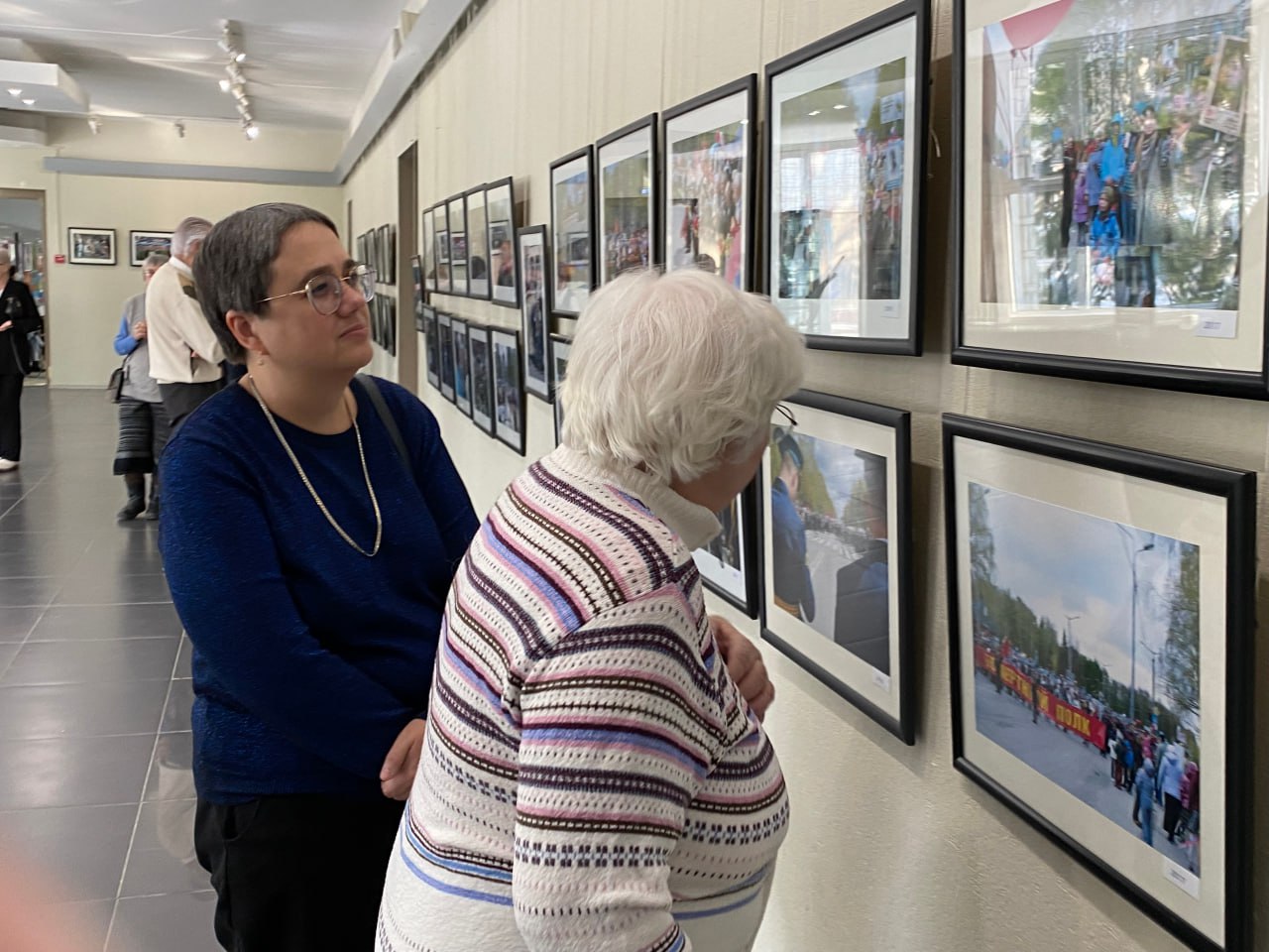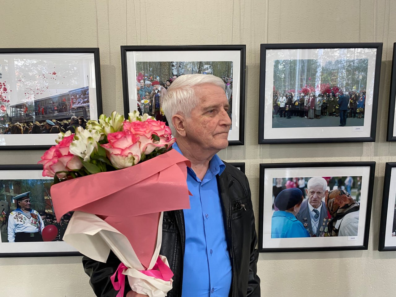 Первый зал выставки посвящен репортажам о праздничных митингах и торжествах Дня Победы за много лет, начиная с 2004 года.
