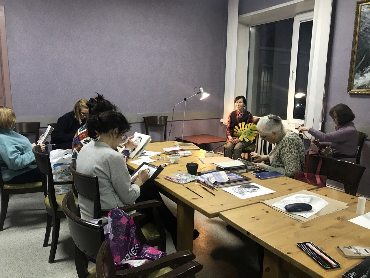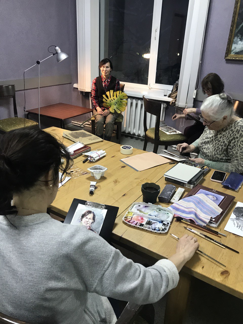 Традиционно в среду вечером художники Дома ученых встречаются, чтобы поработать и пообщаться. Рисование и разговоры об искусстве привлекают самых разных мастеров, от начинающих, до художников, у которых в творческом багаже уже не одна персональная выставки. И это не случайно, такой формат всегда дает возможность обменяться идеями, опытом, новостями художественного мира, да и натура всегда найдется, было бы желание порисовать. Иногда в клуб заглядывают случайные гости, привлеченные желанием погрузиться в тему встречи.
