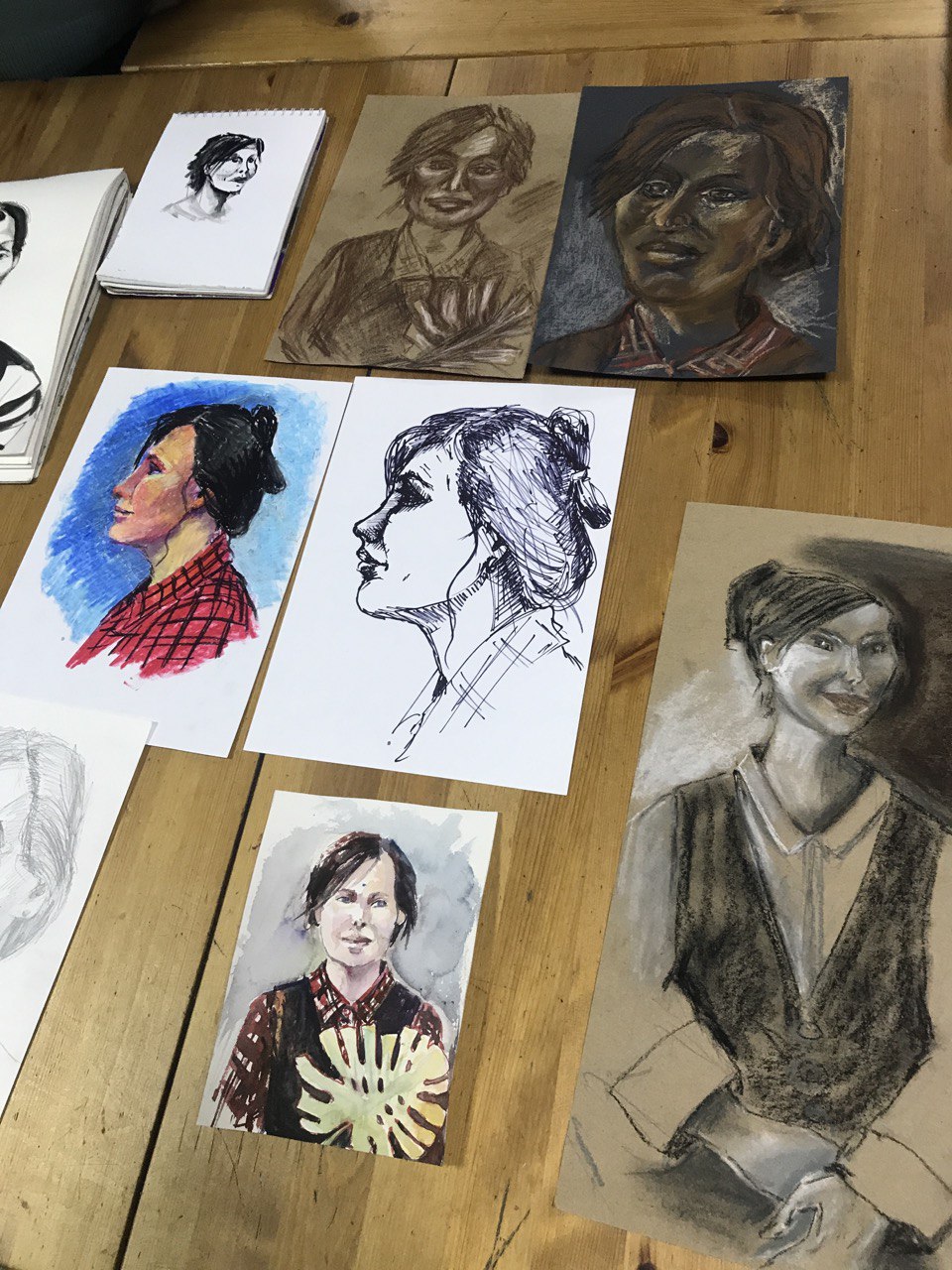 Портретным рисункам в традициях Серебряного века посвятили занятия Арт-клуба в честь выставки женского портрета, которая проводилась в Арт-гостиной с 7 по 26 марта. Наброски, зарисовки акварелью, пастелью, тушью, карандашом - любая техника рисования или живописи в умелых руках способна сотворить настоящее чудо.