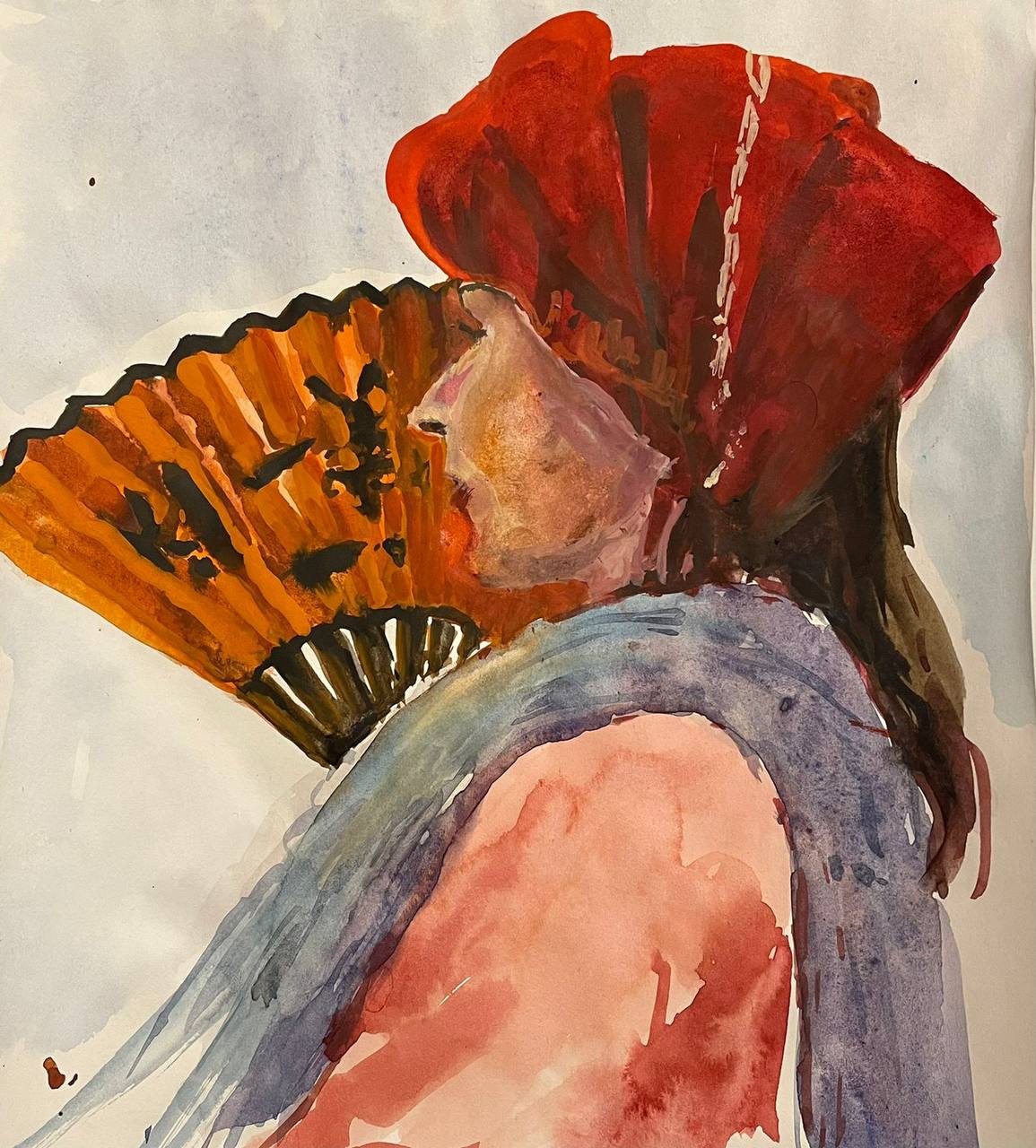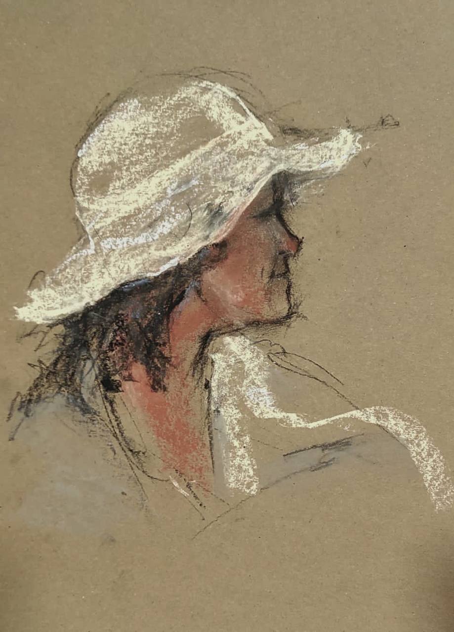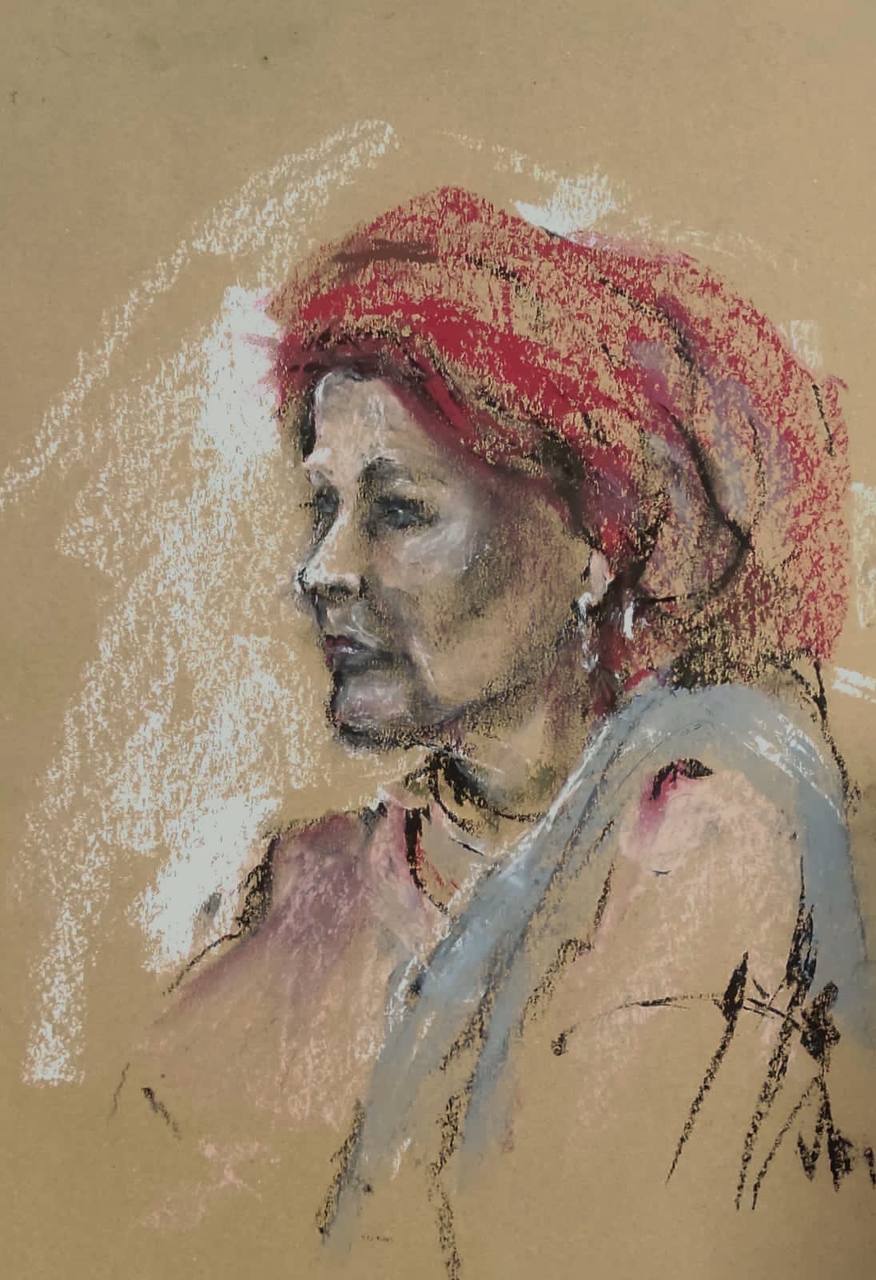 Зачастую художники устраивают перекрестное рисование друг друга. В честь выставки женских портретов клуба устроили портретирование в антураже, ярких нарядах, шляпах, тюрбанах, с веерами и яркими шалями. Получились очень выразительные работы в стиле З.Серебряковой, Б.Григорьева, Ю.Анненкова.
