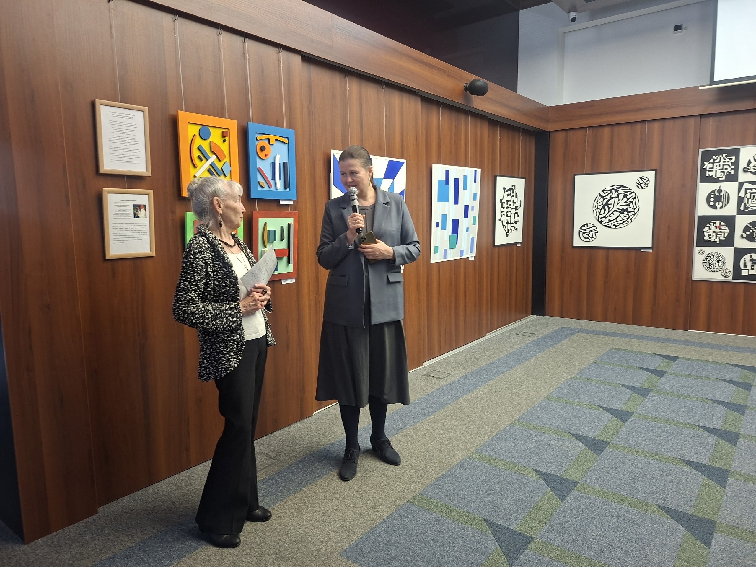 2 апреля в Арт-гостиной НДУ открылась выставка "Беспредметный мир Натальи Курбатовой" - коллекции геометрических абстрактных работ, выполненных в технике ассамбляж. Представила выставку Александра Рогова, мать Натальи Курбатовой. Художник ушла из жизни после тяжелой болезни в 2023 г.