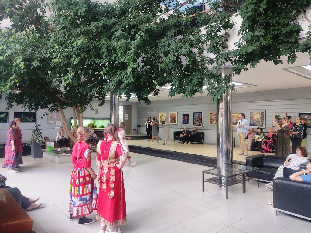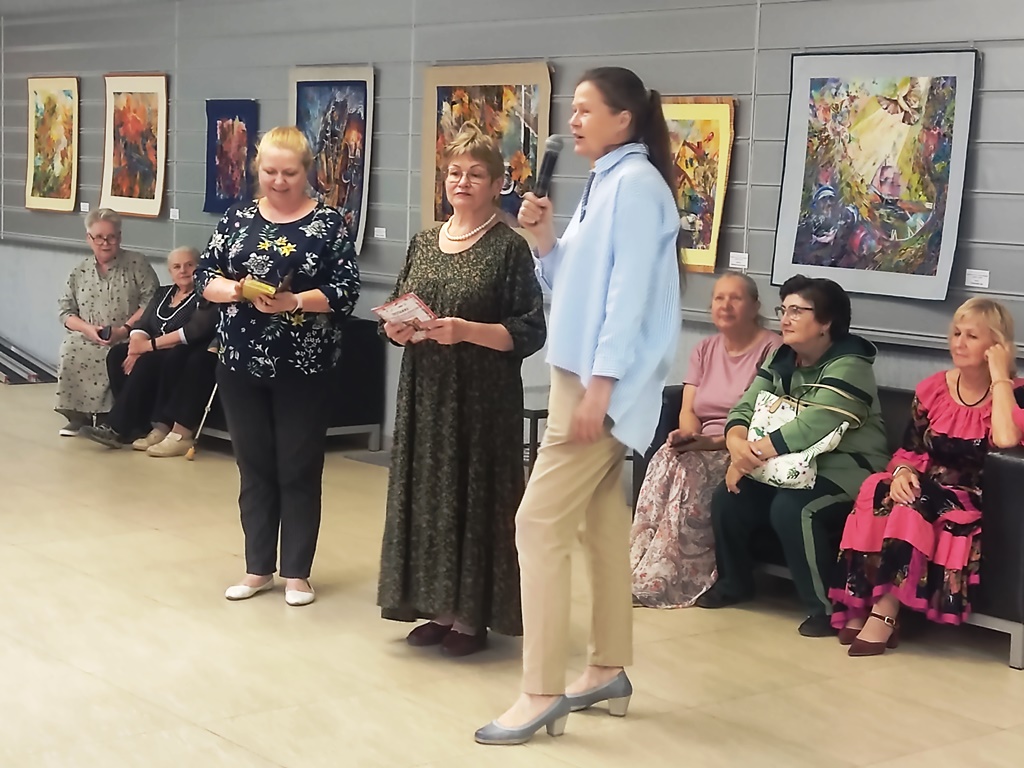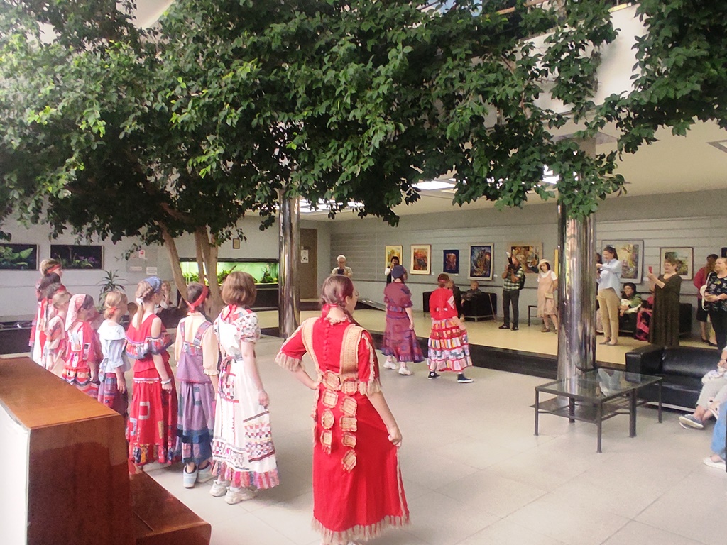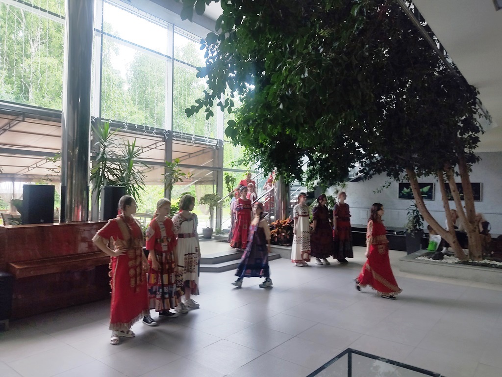 Неслучайно на открытие выставок пригласили известного модельера из Наукограда Кольцово Татьяну Егоровну Киселёву и её группу Студии альтернативной моды "Озорной квилт". Девушки представили платья и костюмы из самой первой коллекции модельера - "Золотые купола" (1994 г.), а также коллекции "Лоскутные узоры" (2015 г.). Несколько моделей из этих коллекций представлены на второй фестивальной выставке - "Русский стиль в лоскутном шитье" в Арт-гостиной. Поэтому после демонстрации коллекций в Зимнем саду и приветствия гостей оргкомитетом фестиваля и организаторами выставки все перешли в уютное пространство Арт-гостиной.
