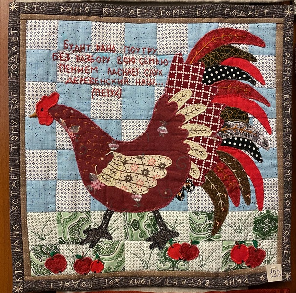 Более 130 миниатюрных работ мастериц со всей России собрал проект ивановского клуба лоскутного шитья "Лоскутная мозаика", которым уже с 2007 года руководит Марина Тулупова. Проект призван исследовать, что же такое именно русское лоскутное шитье? Это цвет, это схемы работ или это использование в работах русской символики? Каждый мастер попытался ответить себе на этот вопрос и копал очень тщательно, пытаясь создать очень емкое и насыщенное произведение. Поэтому смотреть выставку оказалось чрезвычайно интересно. Здесь нет ни одного повторяющегося сочетания тканей, темы или просто колорита. Только размер - 33х33 см, примерно сидение табурета или маленькой подушечки - "думочки". Недаром с первых часов работы проекта пошли желающие приобрести некоторые из работ, очень уж они милые и трогательные.