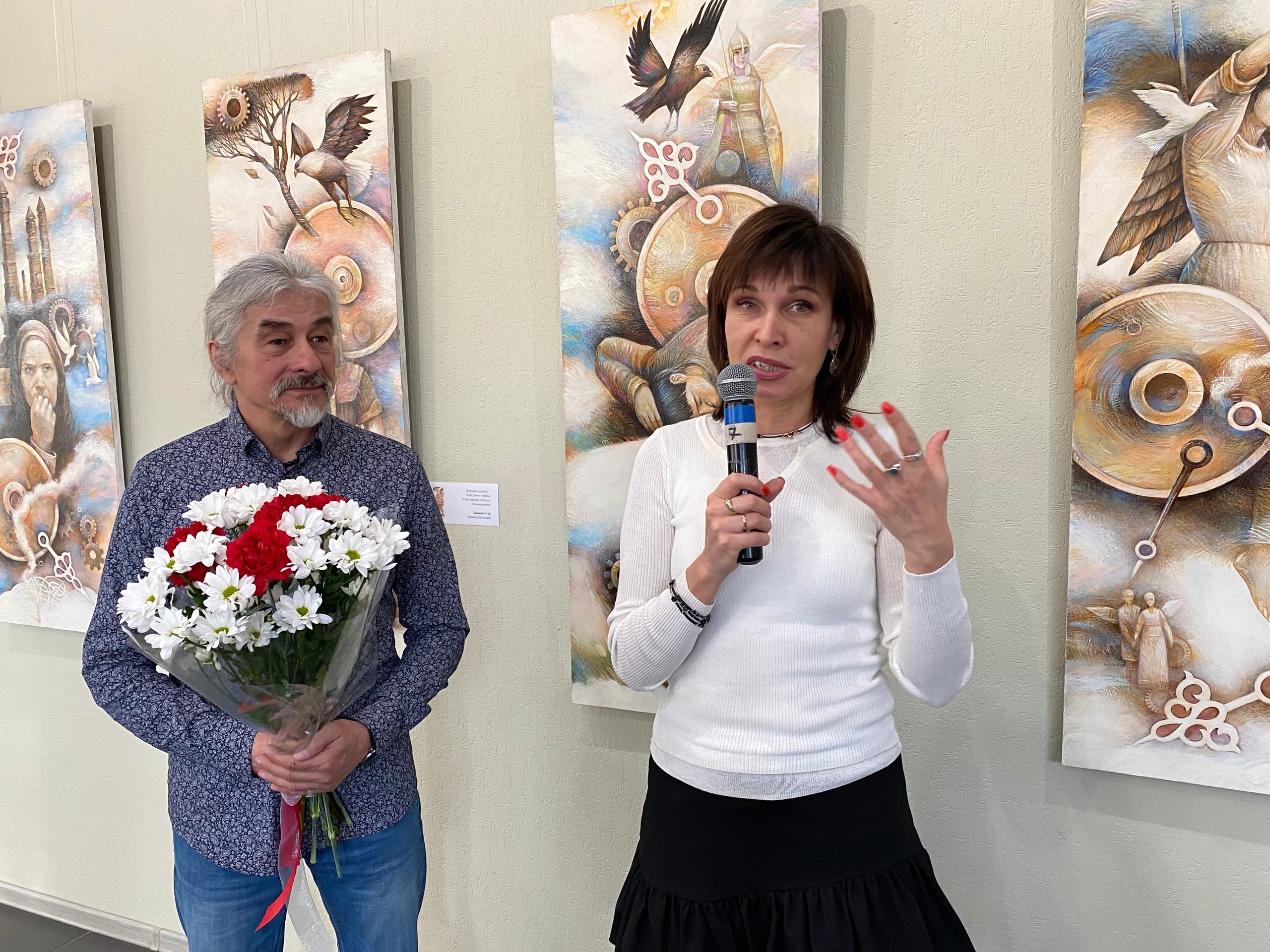 На открытии собрались близкие автора и его жены, вдохновительницы Риммы, коллеги и поклонники. Новые темы, представленные в экспозиции, заставляют задуматься о вечных вопросах, обратиться к нашему былинному наследию и получить удовольствие от игры цвета и великолепных композиций картин выставки.