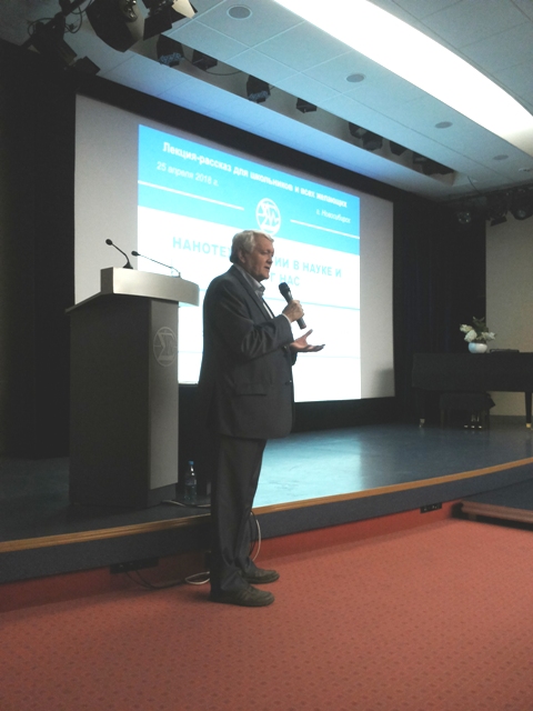 Перейдя к современности, Александр Леонидович рассказал старшеклассникам о научных исследованиях, которые ведутся в данной области и о широчайшем поле применения нанотехнологий в современной промышленности и вообще во всех сферах жизни и деятельности современного человечества. Был подчеркнут вклад российской науки, в частности, Нобелевского лауреата Ж. И. Алферова, который неоднократно посещал Академгородок.