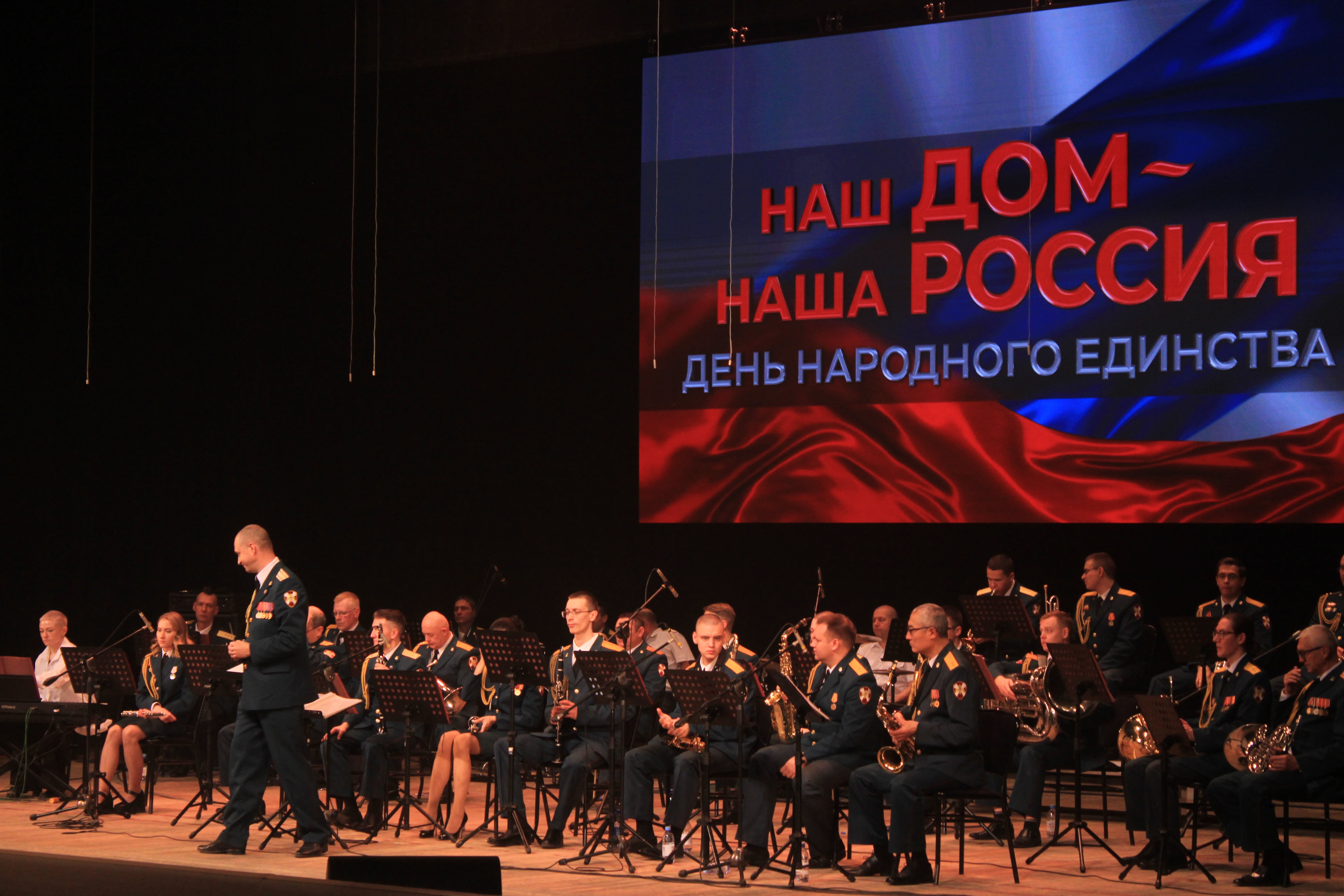 В Большом зале Дома ученых 4 ноября прошел традиционный благотворительный концерт «Наш Дом – наша Россия». С праздничной программой выступил один из лучших профессиональных коллективов Новосибирска – военный оркестр штаба Сибирского округа войск Национальный гвардии РФ, а любимые песни исполнили солисты Анна Игнатенко, Евгения Говорова и Сергей Шабаев. С приветственным словом со сцены выступил настоятель храма Всех святых, в земле Российской просиявших, протоиерей Борис Пивоваров: 4 ноября в России отмечается две особенно значимые даты – День народного единства и День Казанской иконы Божией Матери.