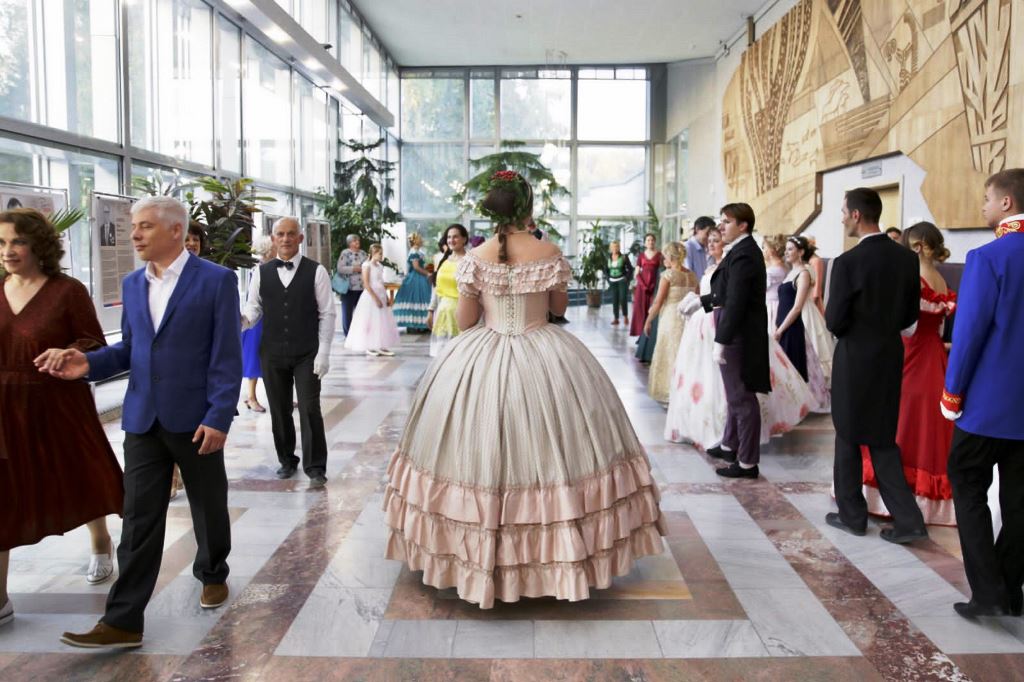 А вечером Школа светского танца «Отражение» провела в фойе Большого зала Академический бал. Почувствовать себя настоящими дамами и кавалерами прошлых столетий смогли не только опытные танцовщики, но и те, кто решили прийти на бал впервые, – ведь здесь всегда рады новым друзьям!