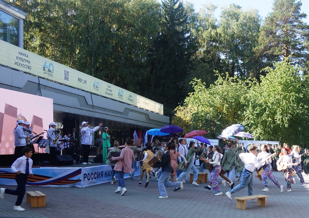 «Пикник на обочине Морского» собрал 17 сентября в Новосибирском Доме ученых жителей и гостей Академгородка, чтобы вместе отметить наш общий праздник. С самого утра на площадке перед Большим залом играл оркестр Новосибирского военного института войск Национальной гвардии РФ, работали фотозоны, а волонтеры раздавали участникам и зрителям значки и воздушные шары с символикой этого дня.