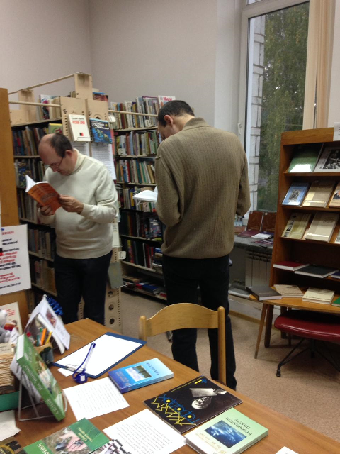 В этот день Геннадий Мартович Прашкевич и Борис Иосифович Тучин, наши уважаемые авторы и члены ДУ, подарили свои новые произведения библиотеке, так что проект растет и ширится: в течение всего дня, не обращая внимания на ливень за окном, в библиотеке шли встречи, разговоры о людях, книгах, завязывались новые контакты.