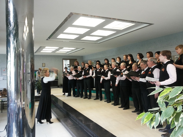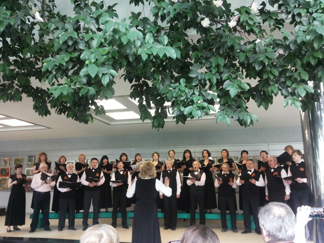 В Зимнем саду в честь Дня Победы представил программу хор выпускников НГУ "АХ АКАДЕМ" под руководством хормейстеров О. Выхристюк, О. Ерофеевой и Н. Актёршевой. Великолепное исполнение самых популярных песен о войне было благодарно встречено гостями Дома ученых.