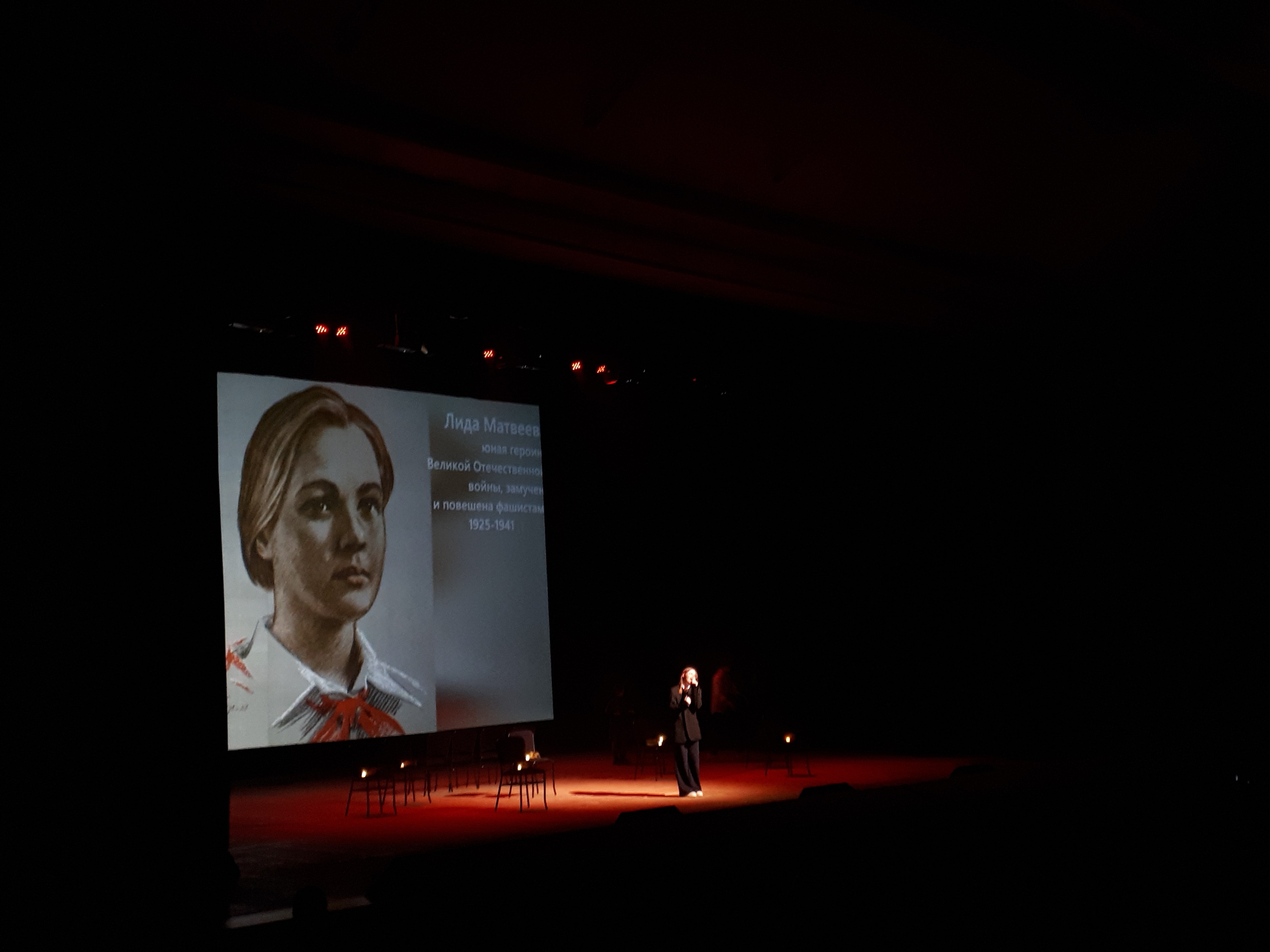 Спектакль «Дети войны» – это дань памяти всем героям нашего Отечества. Имена детей-героев – Зои Космодемьянской, Вали Котика, Лени Голикова, Марата Казея и многих, многих других – это имена нашей Победы. Это истории беспримерного мужества и страшной боли тех, кто не дожили даже до совершеннолетия, но стали навеки бессмертными своим подвигом во имя Родины. Им была посвящена и фотовыставка, развернутая в фойе Большого зала и сопровождаемая рассказом юных волонтеров.